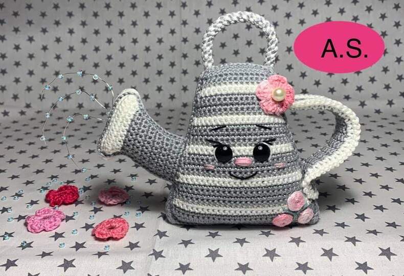 Das Gießkännchen wurde mit Baumwollgarn (50g-125m) und einer 2,5 Nadel gehäkelt.