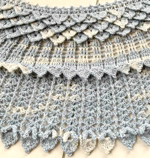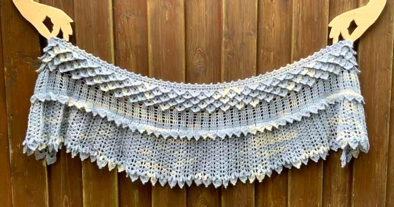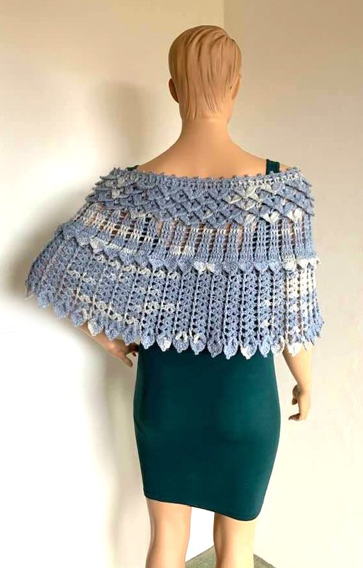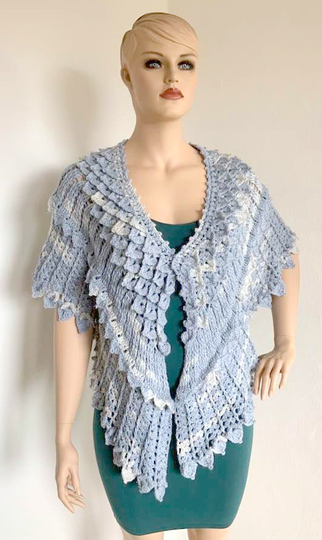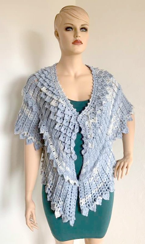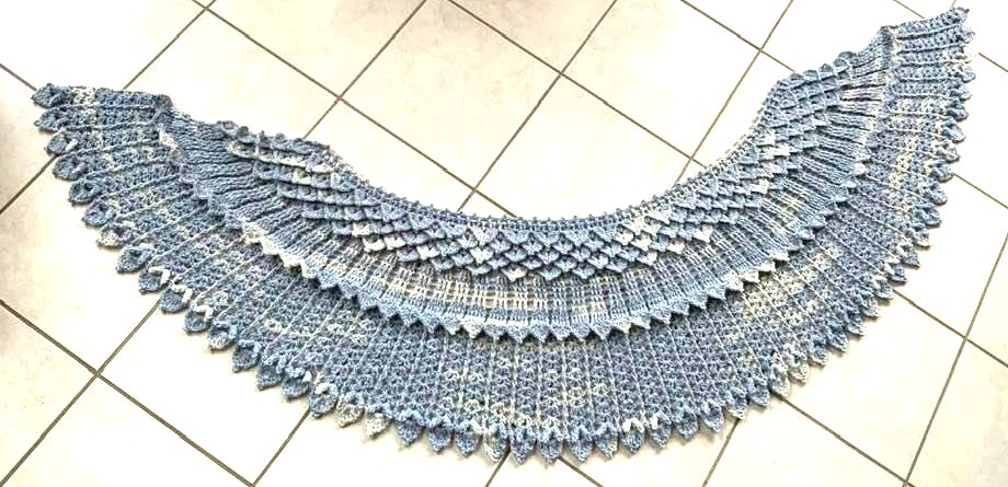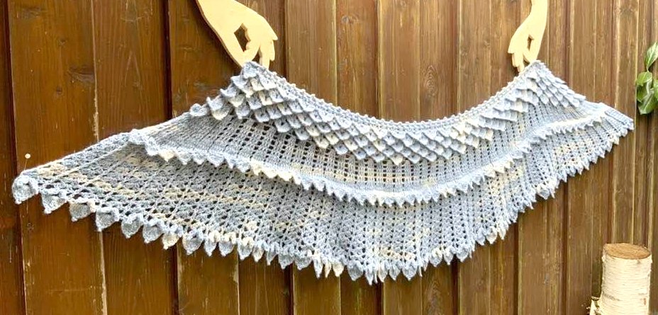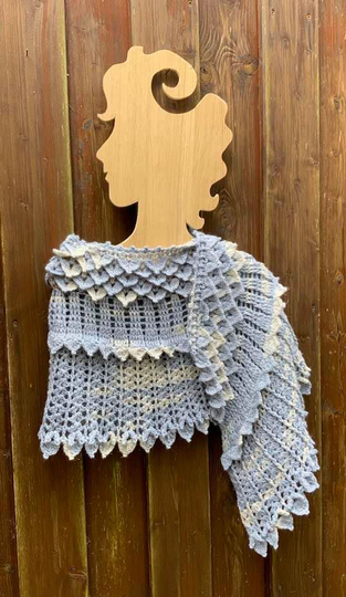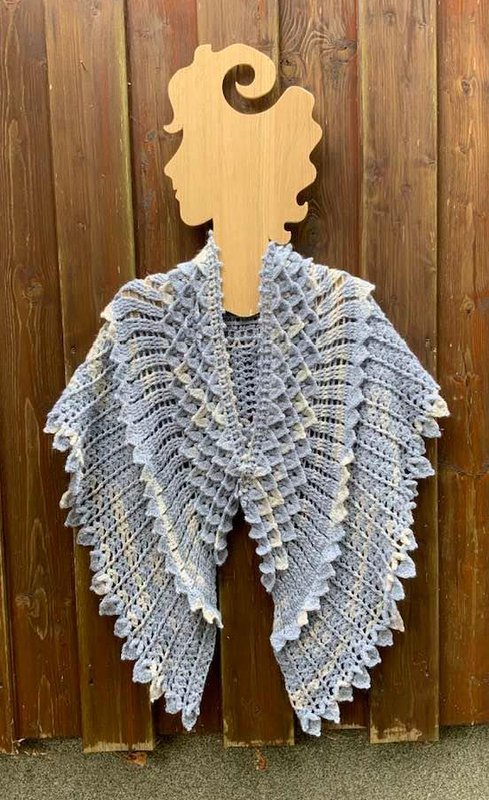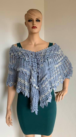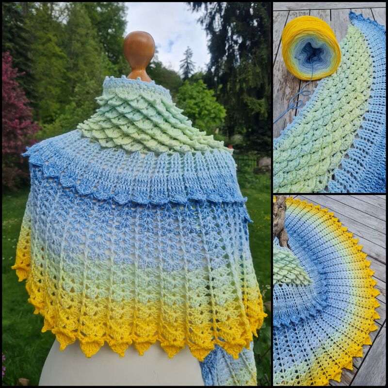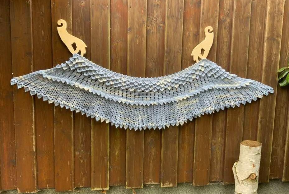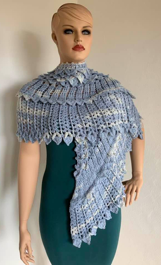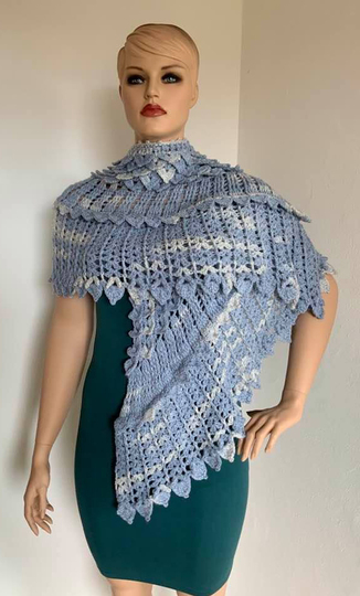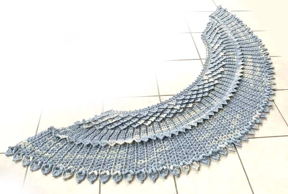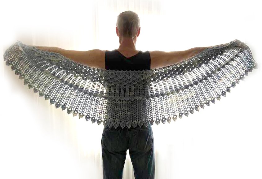 Das gebogene Tuch Kristallflügel besteht aus 3 spannenden Musterstreifen mit vielen Picots und Spitzen, ...so habe ich versucht Flügel zu imitieren....eine wirklich tolle Handarbeit!