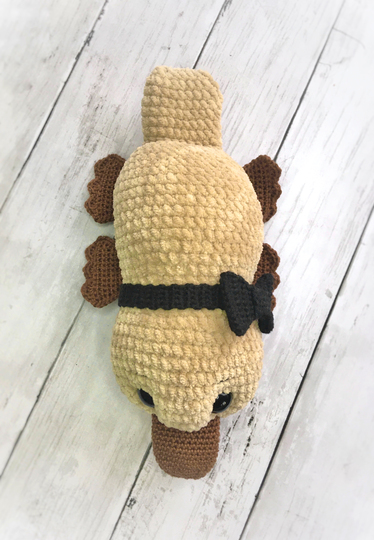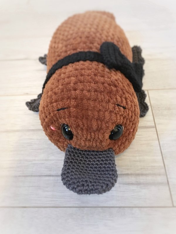 Das Schnabeltier Schorsch wird mit Häkelnadel 3 und 4 ca. 32,5cm lang.