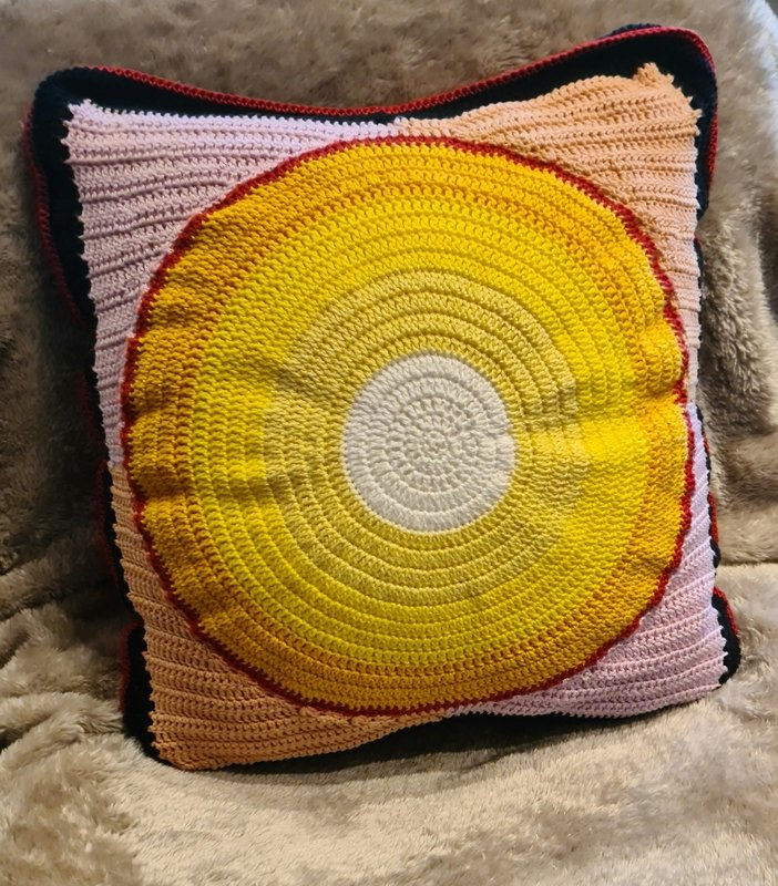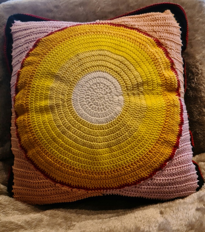 Für das Dekokissen habe ich Baumwollgarn benutzt z.B. Schachenmayr Catania, mit einer 3,5 mm Häkelnadel.