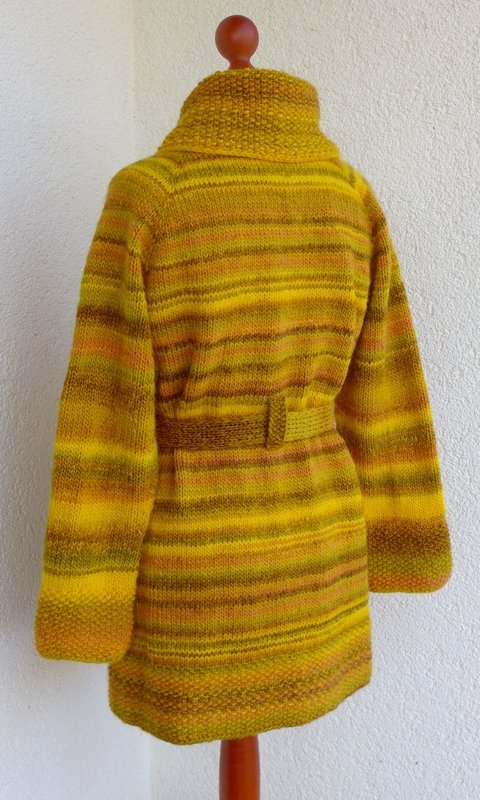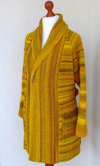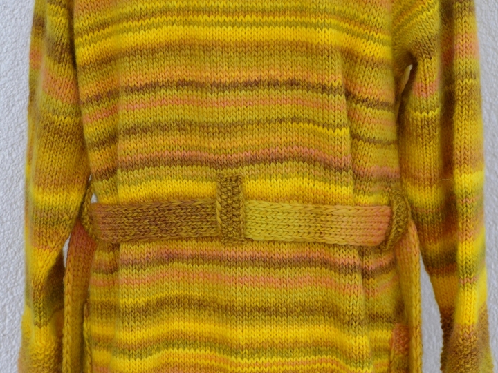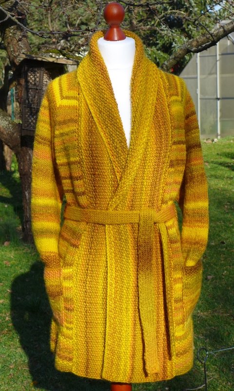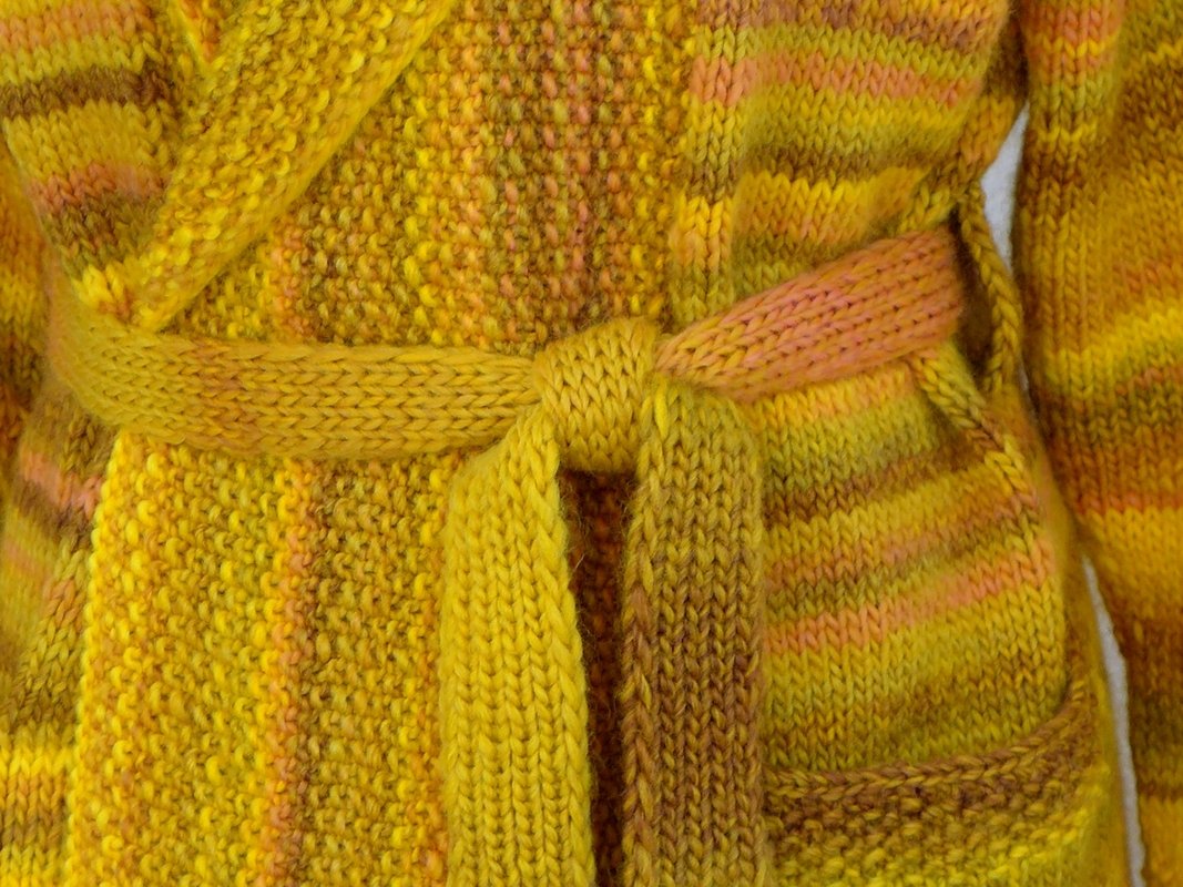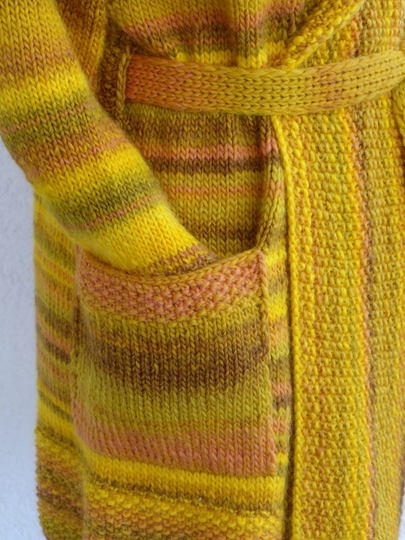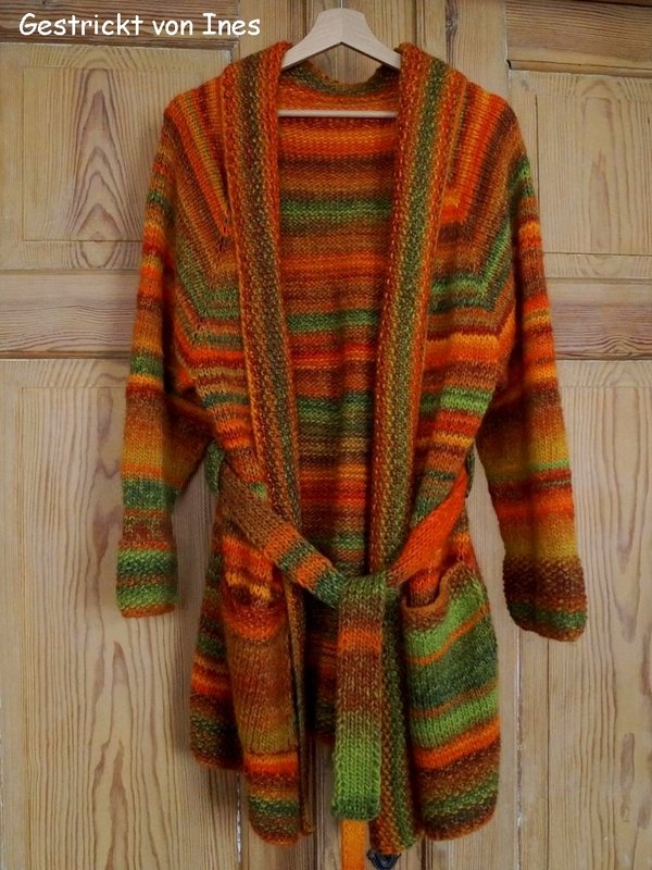 Es gibt nichts Gemütlicheres als eine Strickjacke, wenn es einen fröstelt. Diese hier habe ich eigentlich für mich entworfen. Aber sie gefiel meinen Schwestern und Freundinnen so gut, dass ich sie mittlerweile schon mehrmals gestrickt habe. Alle lieben sie, weil sie so schön leger fällt, eine schlanke Figur macht, Taschen und einen Gürtel hat und über den Po geht. Und man kann sie auch noch in seiner Lieblingsfarbe aus dem wunderbar weichen Garn stricken.