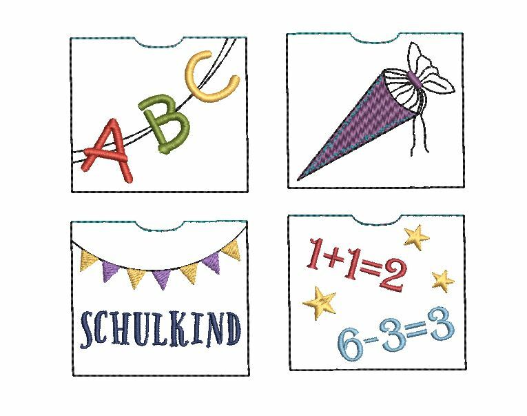 Zum anderen gibt es einen separaten Ordner mit Mehrfachstickbogen. Hier können immer 4 kleine Hüllen auf einer Fläche von 15x14cm in einem Schwung pro Muster gestickt werden.