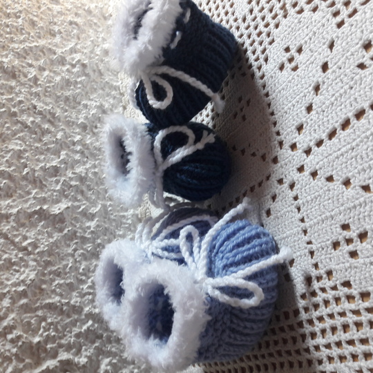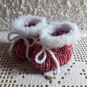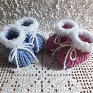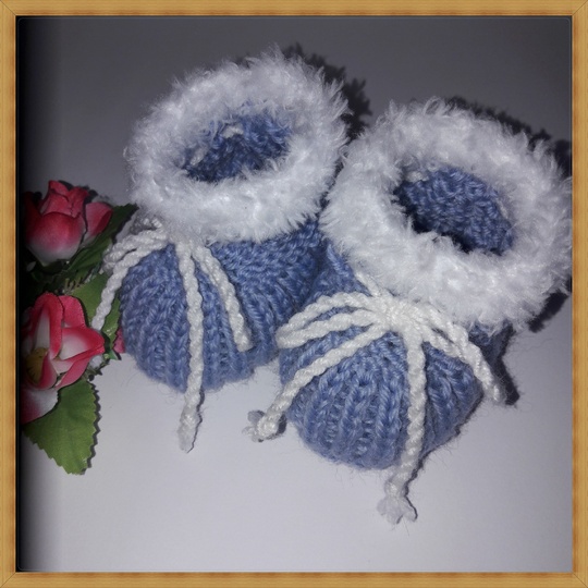 Diese süßen Babystiefelchen kannst Du ganz einfach ohne Nadelspiel stricken.