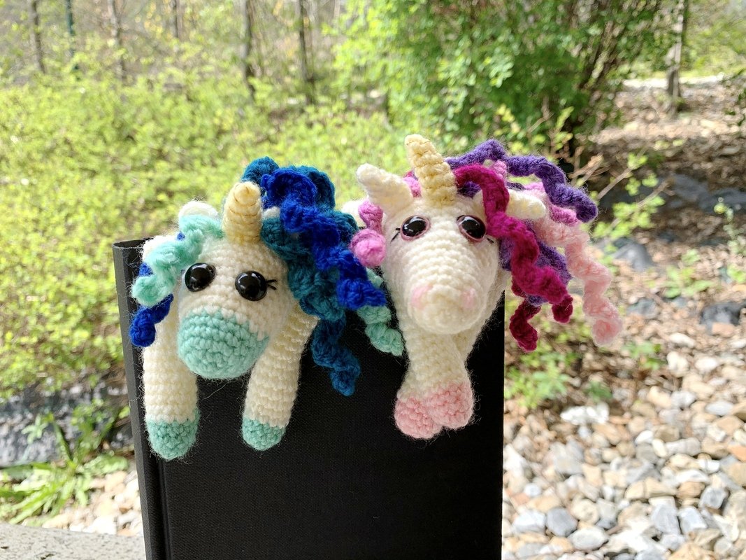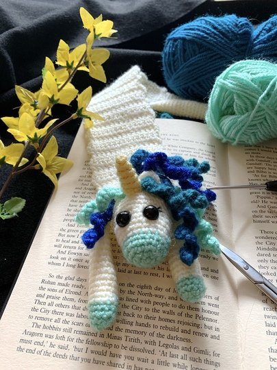 Möchtest du das Lesezeichen ein wenig variieren, stehen dir viele Möglichkeiten zur Verfügung: du kannst die Arme und Beine auch gleichzeitig mit dem Körper häkeln, ebenso die Ohren – damit entfällt das Annähen am Ende! Und auch für die Augen habe ich mehrere Möglichkeiten beschrieben – Teddyaugen, aufgestickte Augen, etc… du kannst das Horn etwas verschnörkeln, oder auch nicht! Die Entscheidung ist ganz dir überlassen!