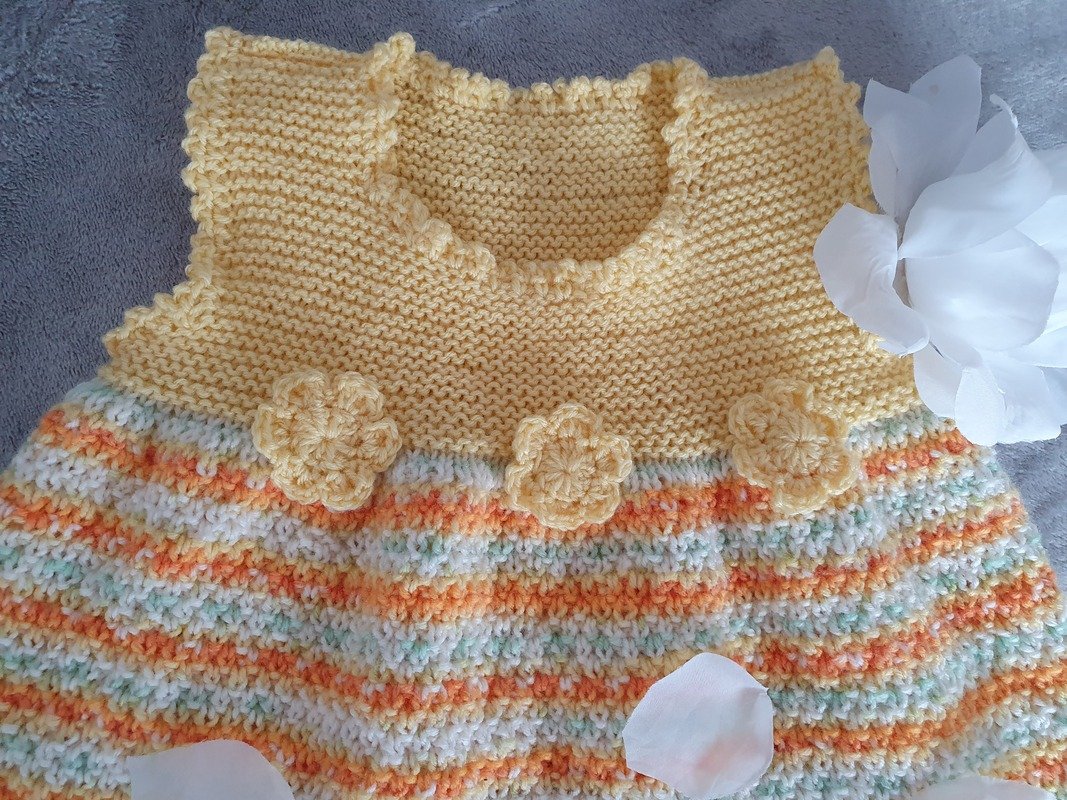 Das Babykleidchen wird nur in rechten und linken Maschen gestrickt.