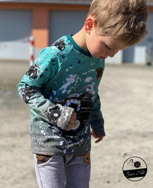 Ein Schnitt, den du wirklich für alle Kinder nähen kannst: Gr. 62 – 176 ist in Einzelgrößen dabei! Und im Probenähen hat sich gezeigt: auch Mamas mit Gr. M passen noch wunderbar hinein =) .