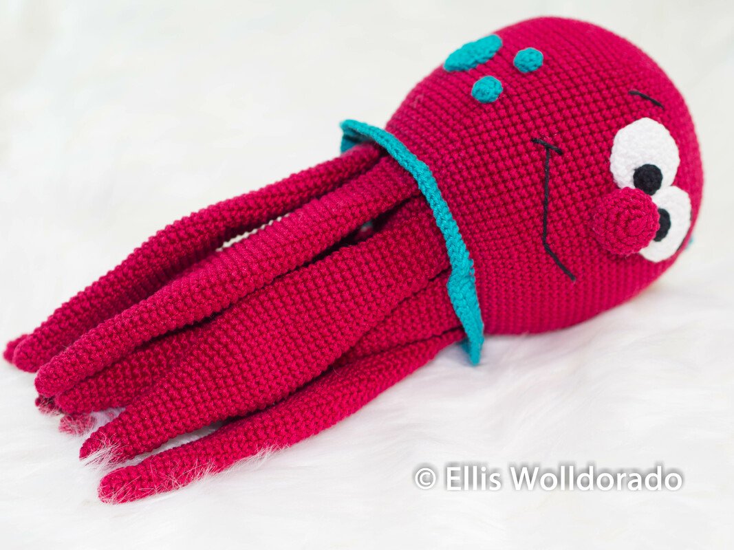 Mit Hilfe der hier erhältlichen Häkelanleitung (PDF-Datei) kannst Du Dir ganz einfach Deinen eigenen Oktopus häkeln. Die Anleitung beinhaltet viele Bilder, die Dir das Nacharbeiten leicht machen. Du weißt zu jedem Zeitpunkt, wie Deine Häkelarbeit gerade aussehen sollte.