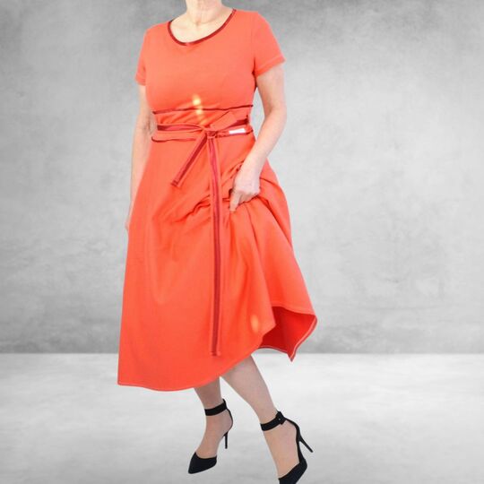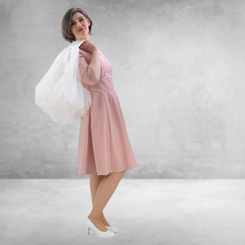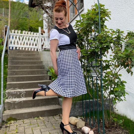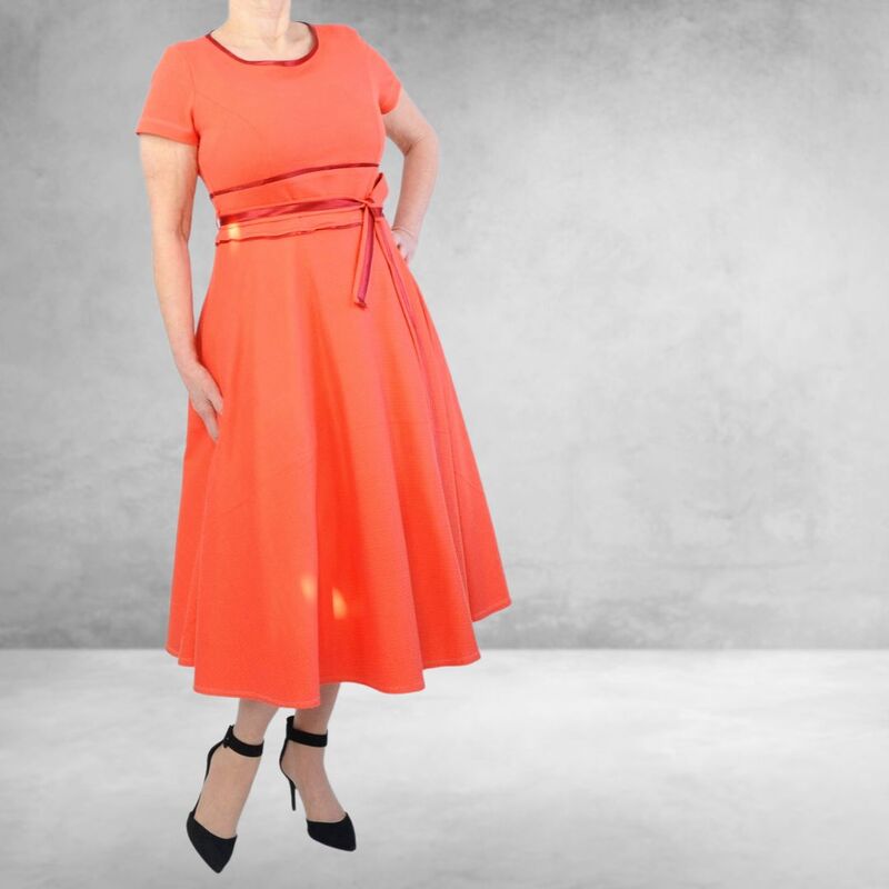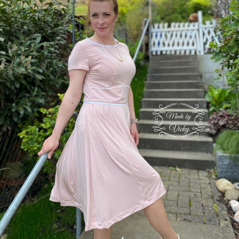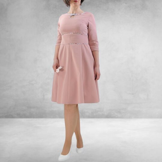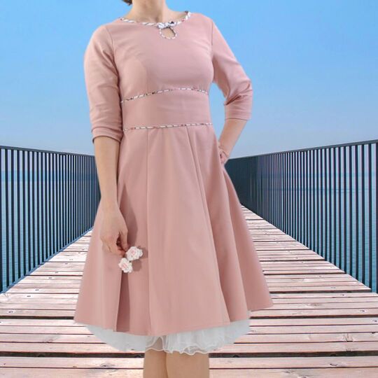 Mit dem Schnittmuster Valentine nähst Du Dir ein zauberhaftes Damenkleid im 60er Jahre-Stil. Der Schnitt richtet sich sowohl an fortgeschrittene Nähanfängerinnen also auch an die Profis. Je nachdem, wie Deine Nähkenntnisse sind, kannst Du das Kleid aus Jersey oder auch aus Webware nähen. Es steht Dir ein Tellerrock oder ein Bahnenrock zur Verfügung. Nähanfängerinnen nähen das Kleid aus Jersey, da hier das aufwendige Einnähen des Reissverschlusses entfällt. Die Profis können sich auch an die Variante mit Webware wagen, dann mit Reißverschluss und das Oberteil wird abgefüttert.