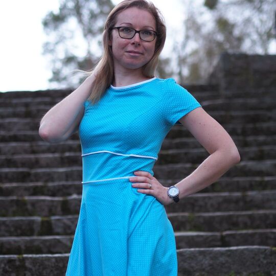 Als besonderer Hingucker ist die Miederoptik, die Du mit eingesetzten Paspeln noch verstärken kannst. Der Schnitt bietet Dir zwei Ausschnittvarianten: Rundhalsausschhnitt mit Beleg für die Nähanfänger/innen, oder, wer mehr Herausforderung will, nimmt den süssen kleinen V-Ausschnitt, der mit Schrägband versäubert wird. Ebenso stehen Dir zwei Ärmel-Längen zur Verfügung.
