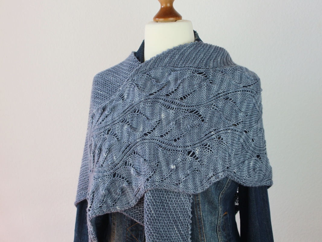 Das Tuch wird nahtlos in einem Stück gestrickt und verbindet anspruchsvolles Musterstricken mit entspannten Abschnitten. So entsteht ein ausgewogenes Strickprojekt, das Konzentration und Strickfluss auf schöne Weise kombiniert.