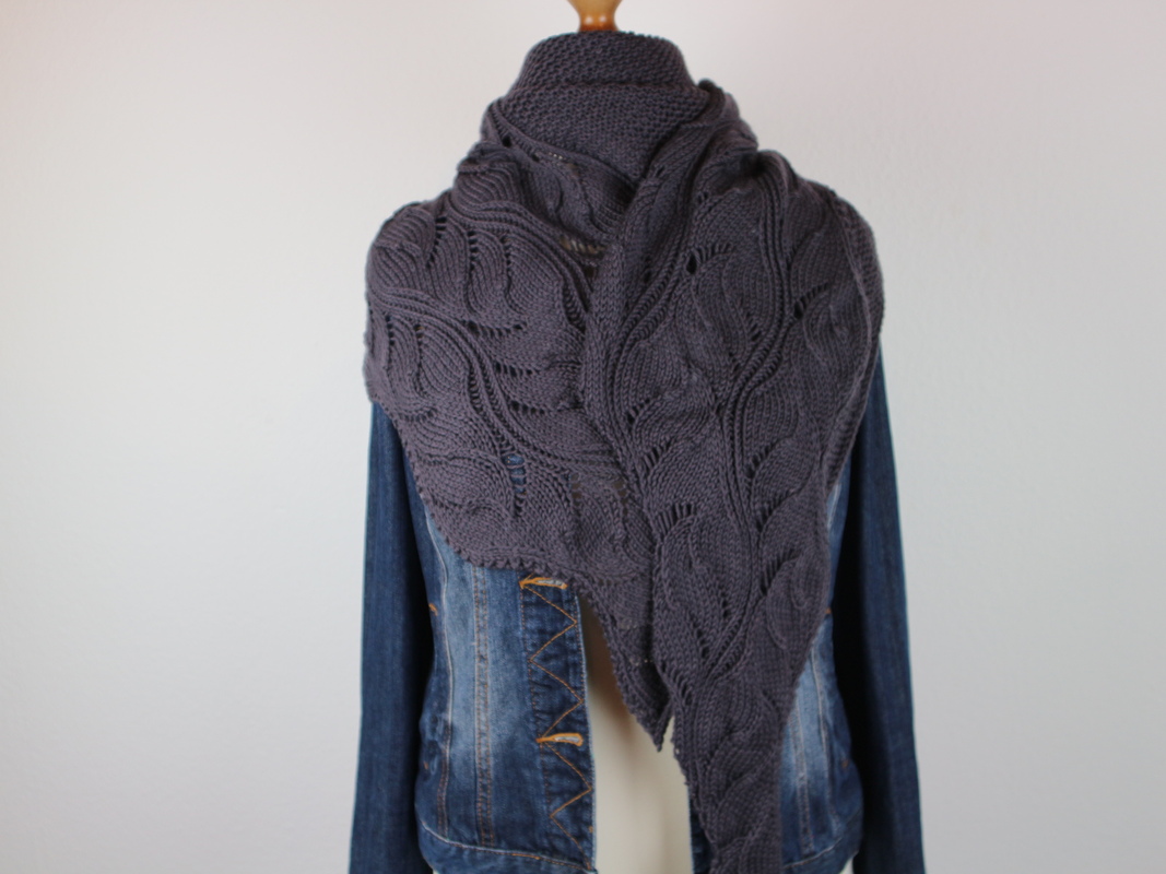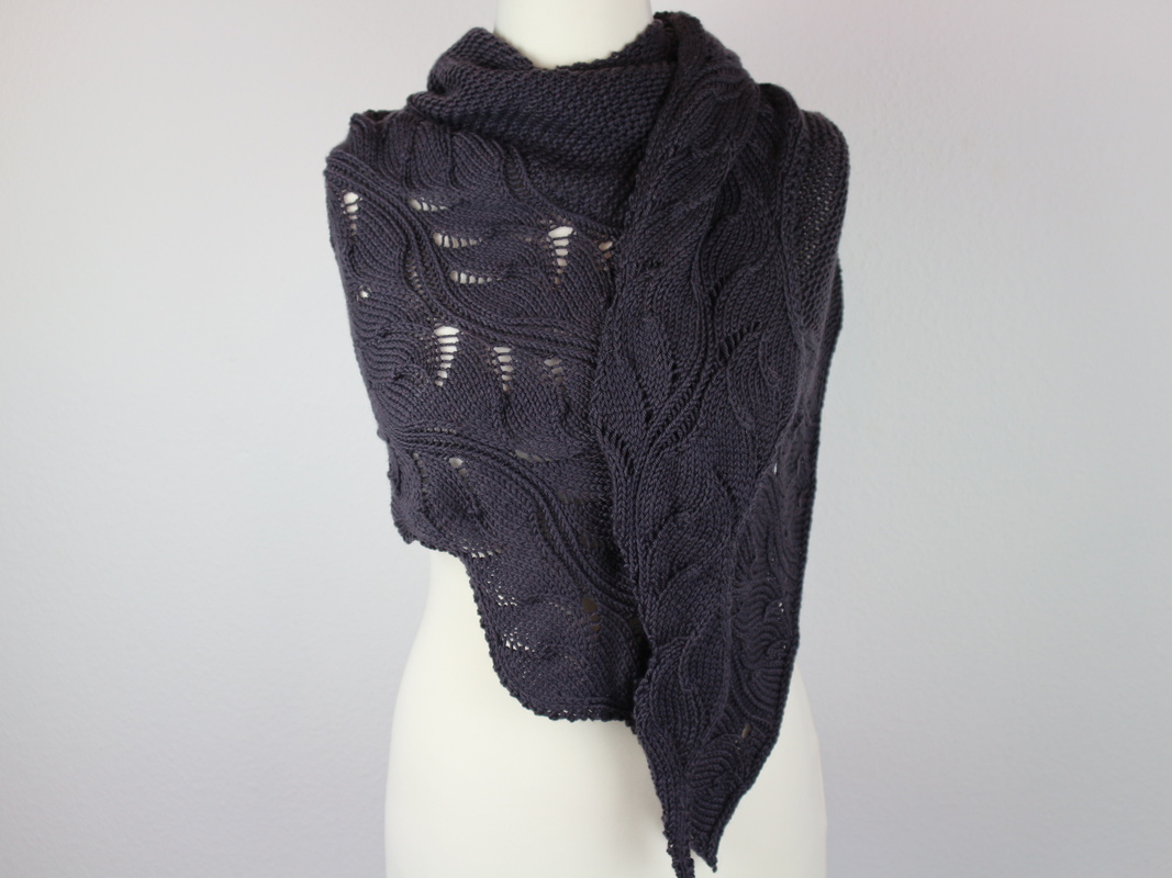 Harmonisch fließende Wellen prägen das Design dieses ausdrucksstarken, modernen asymmetrischen Dreieckstuchs. Das lebendige Lacemuster sorgt für Spannung und Tiefe, während sich kraus rechts gestrickte Partien angenehm ruhig und meditativ arbeiten lassen.