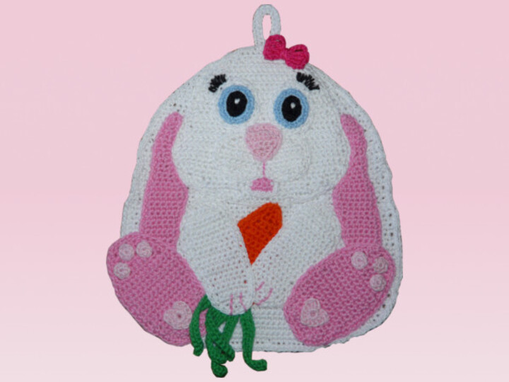 Peggy ist ein kleiner knuffiger Hase, den man als Topflappen oder aber auch sehr gut
