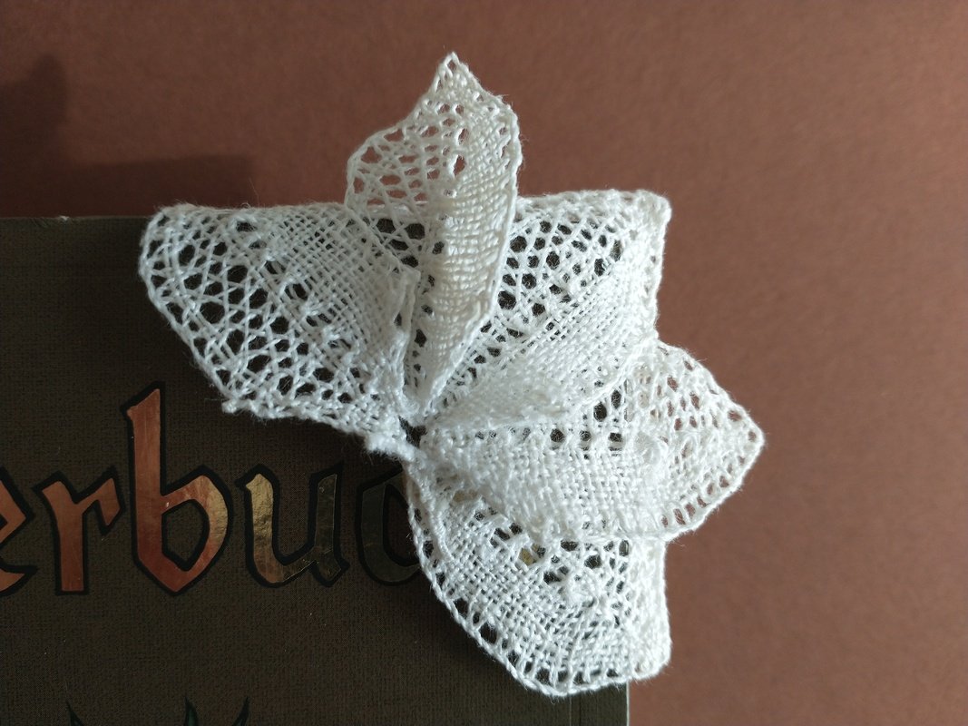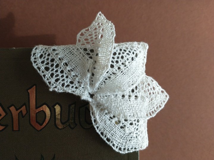 Dieses Lesezeichen ist durch ein Origami inspiriert. Es eignet sich gut zum Klöppel befreien.