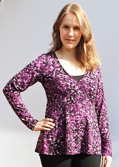 Dieses Modell eignet sich auch gut für Schwangere in den ersten Wochen, da das lockere Rock- bzw. Shirtteil genügend Platz für den Bauch bietet.