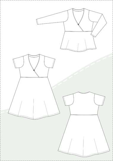 Im Schnittmuster sind vier Ärmellängen enthalten: kurz, 3/4, 7/8 und lang. Du kannst „Conny“ wahlweise als knieumspielendes Kleid oder als hüftumspielendes Shirt nähen.