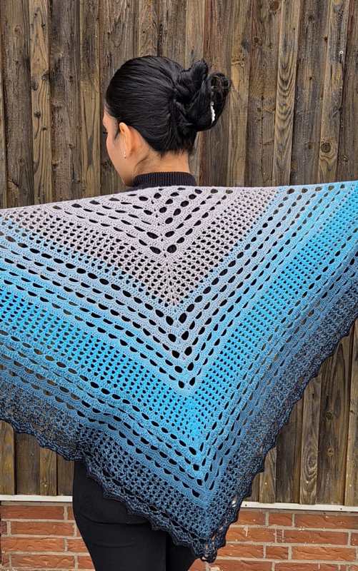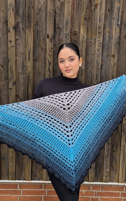 Für das Tuch wurde Bobbel "Magicblue" von MT.Bobbelwelt verwendet. 1000LL 3Fädig und mit NS 3mm