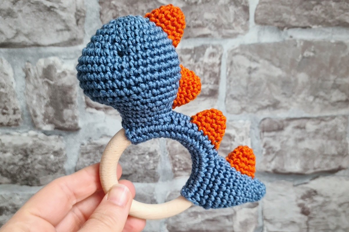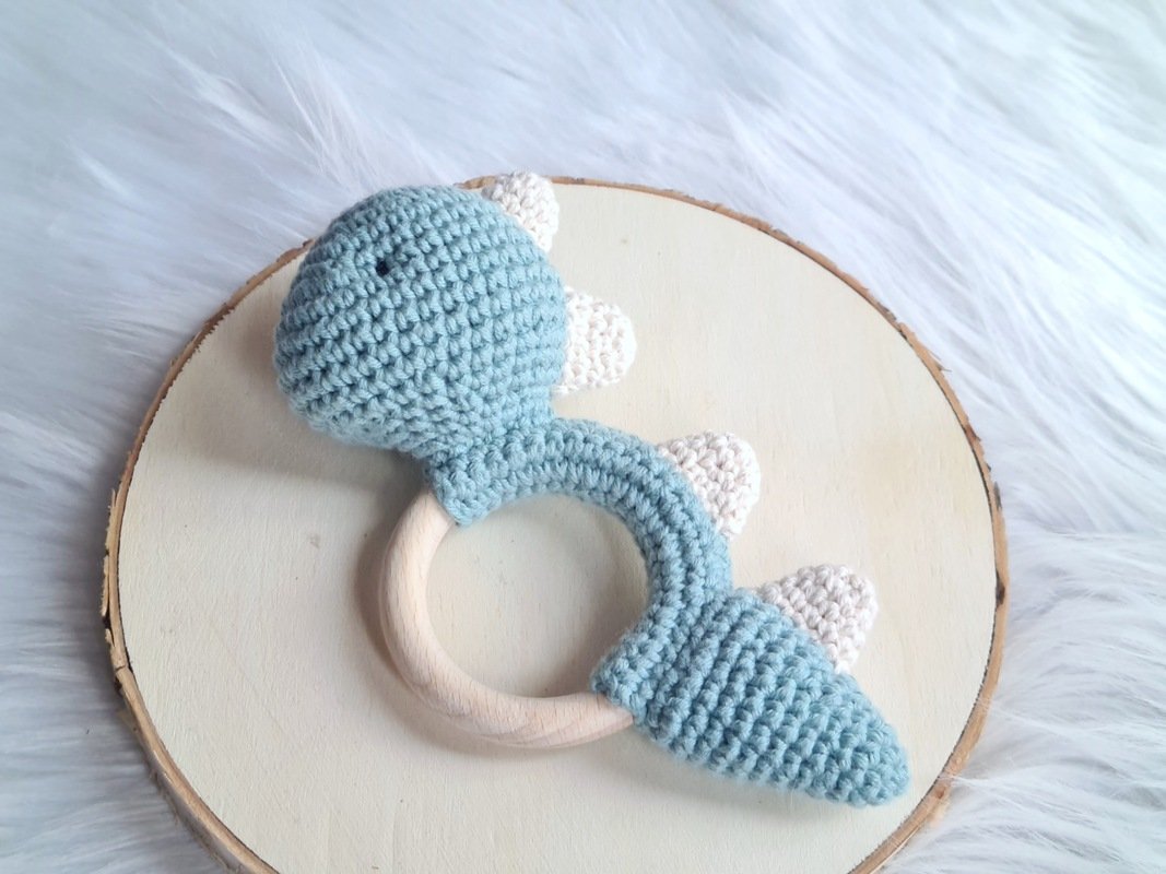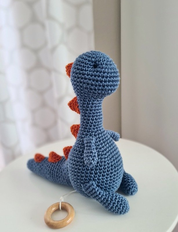 Mit der u.g. Wolle wird die Spieluhr ca. 20 cm groß. Der Greifling ca. 15 cm.