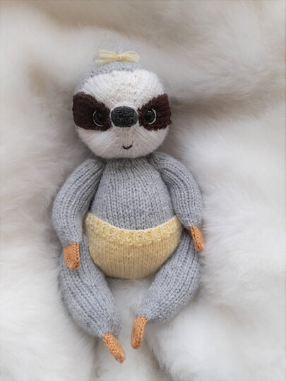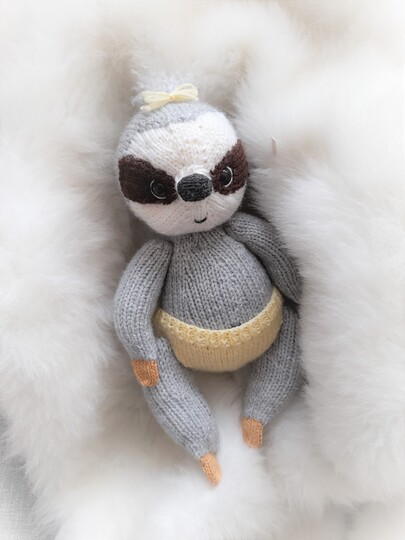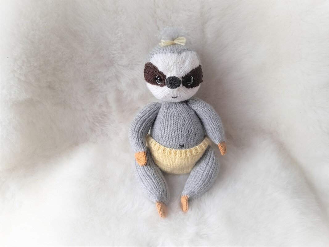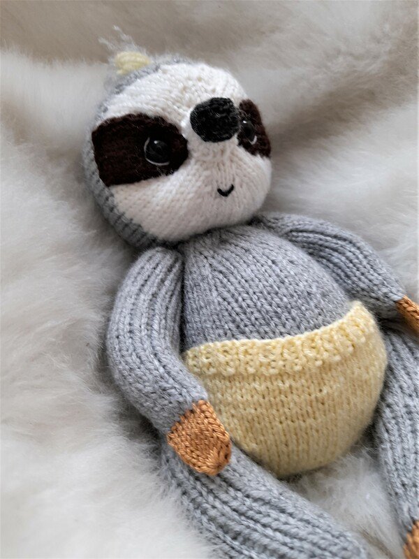 Das süße Faultierbaby Melissa bringt Strickspaß in dein zu Haus.