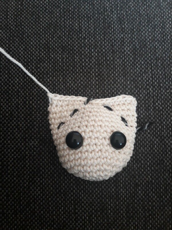 Ihr bekommt eine Anleitung, nicht das fertige Produkt. Das Katzenköpfchen ist schnell gehäkelt und für Anfänger bestens geeignet. Sollten keine Sicherheitsaugen vorrätig sein, kann man die Augen auch aufsticken.