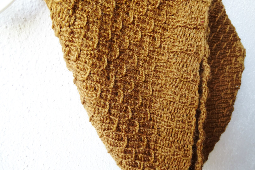 Garn: Steinbach Eroica (55% Nylon, 45% Wolle, 114m/50g), 2 Knäuel. Verbrauch für das Beispiel mit 65cm Umfang: 148m.