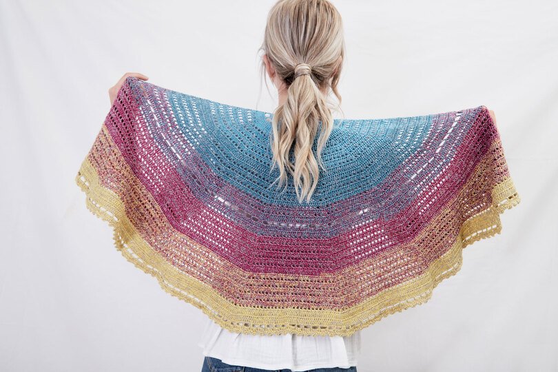 Diese Anleitung ist für das Häkeltuch Halbmond. Es kann mit einem 3- oder 4-fädigen Bobbel in beliebiger Größe gehäkelt werden.