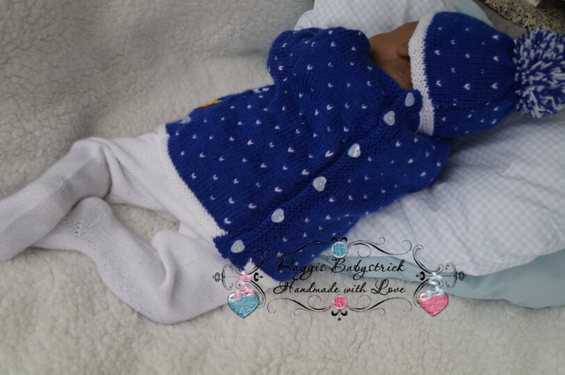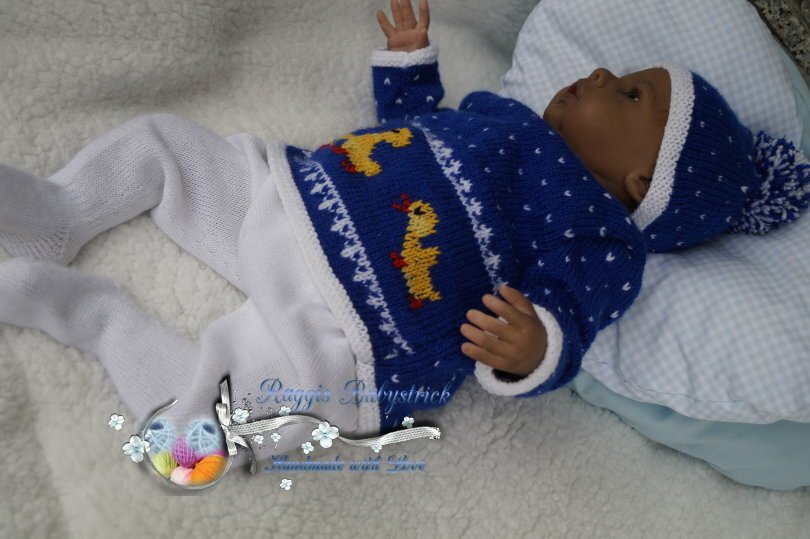 Strickanleitung für ein wunderschönes Set, 3-teilig für Babys & Reborns, Gr. 48 Das Set ist aus Babysoftwolle Nd. Nr. 2,5 + 3 gestrickt. Die Anleitung ist sehr genau beschrieben und mit vielen Fotos. Du kannst mit dieser Schritt – für – Schritt – Anleitung dieses Set gut nacharbeiten.