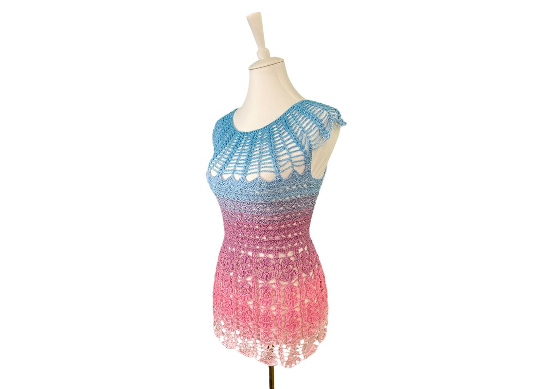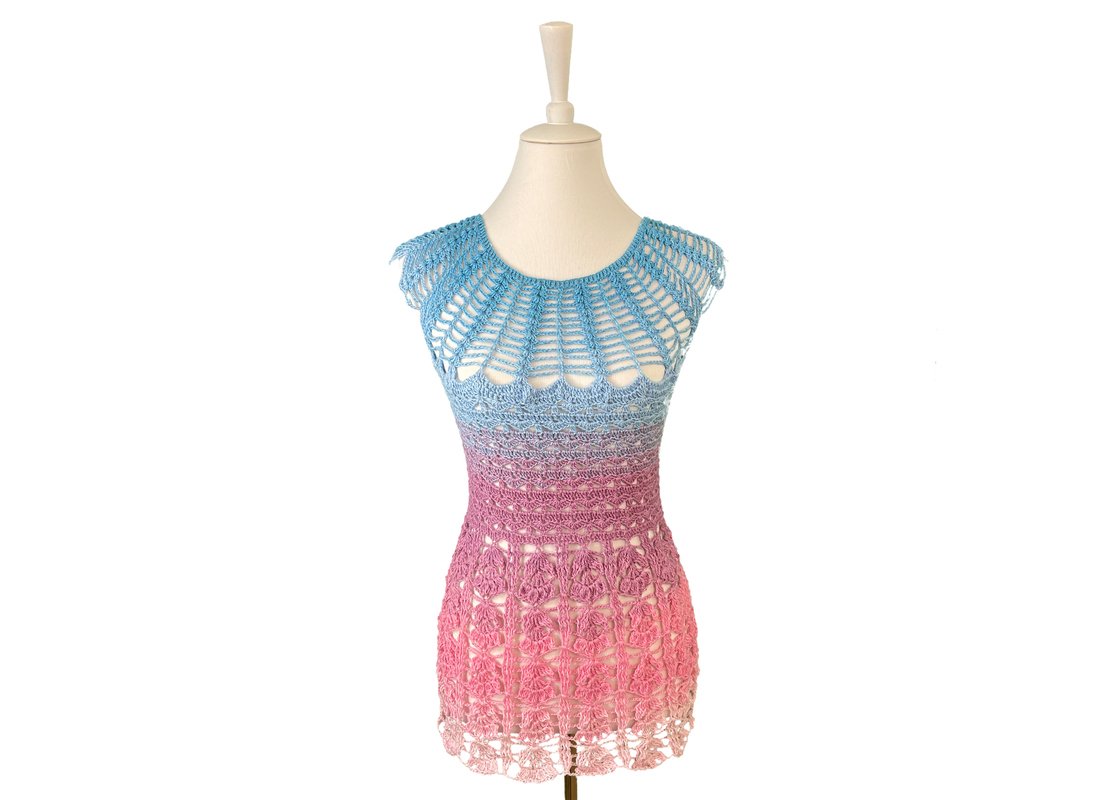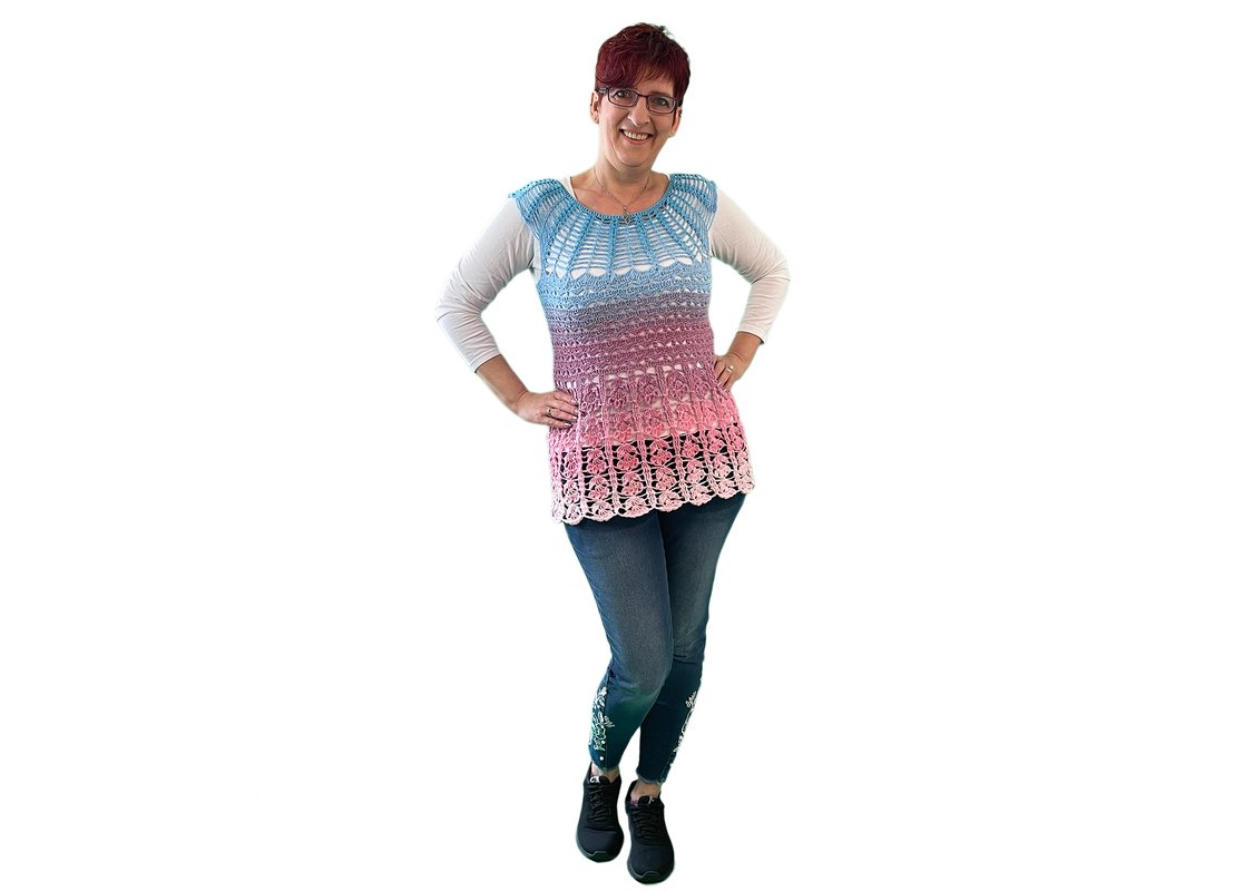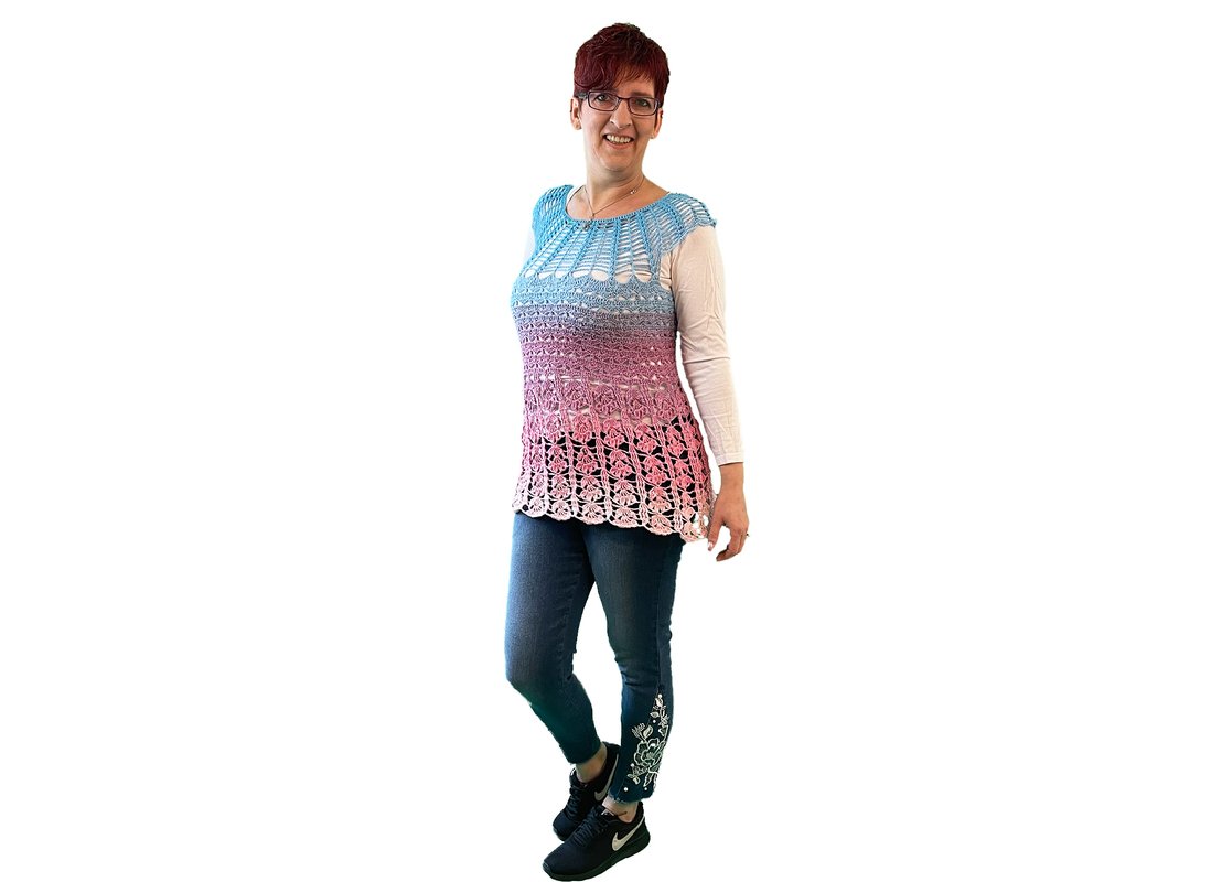 Für die Tunika wurde Bobbel "Südseeperle" von MT.Bobbelwelt verwendet. für Größe 36/38 1000LL 3Fädig und mit NS 3mm