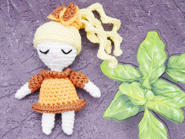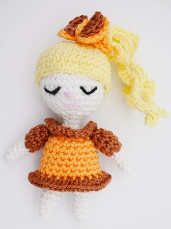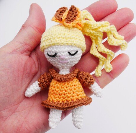 Das fertige Püppchen ist mit dem angegebenen Garn 10cm hoch,