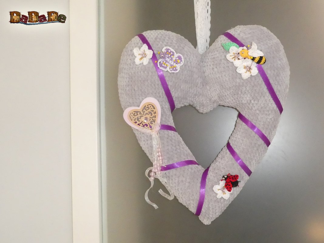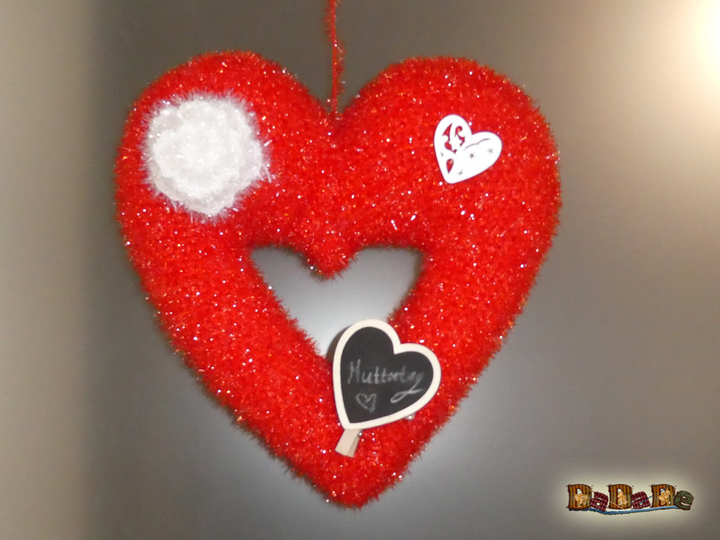 Mit Wolle der Nadelstärke 4 wird das Herz, ungefähr; 42 x 38cm
