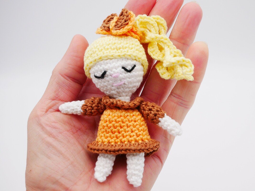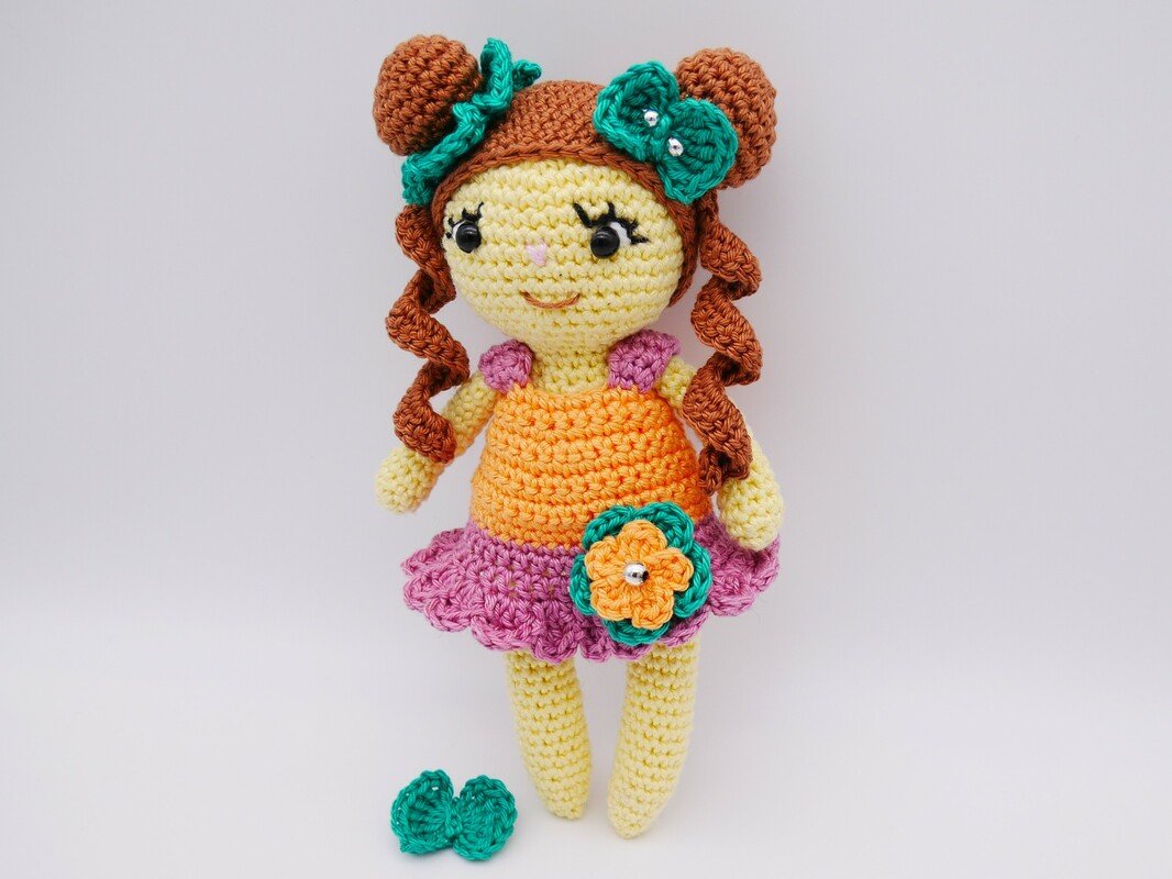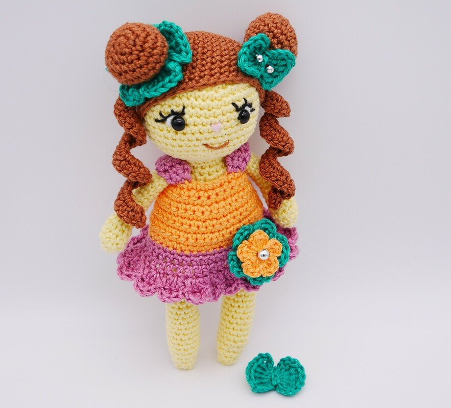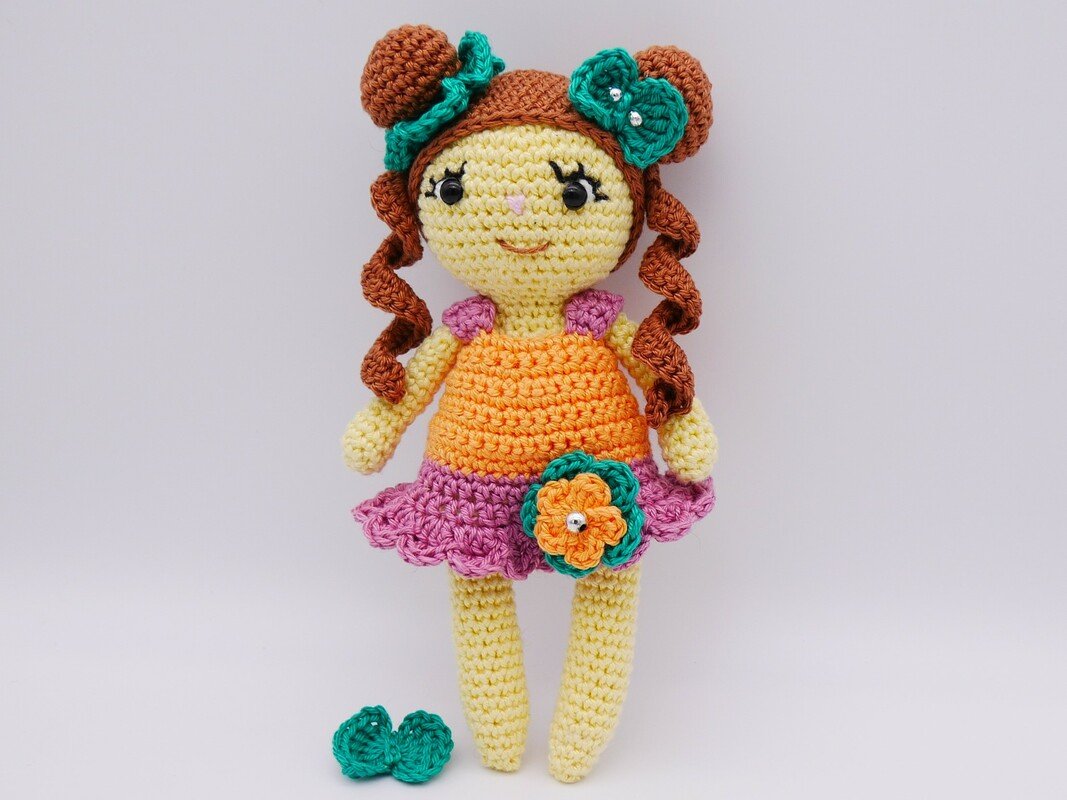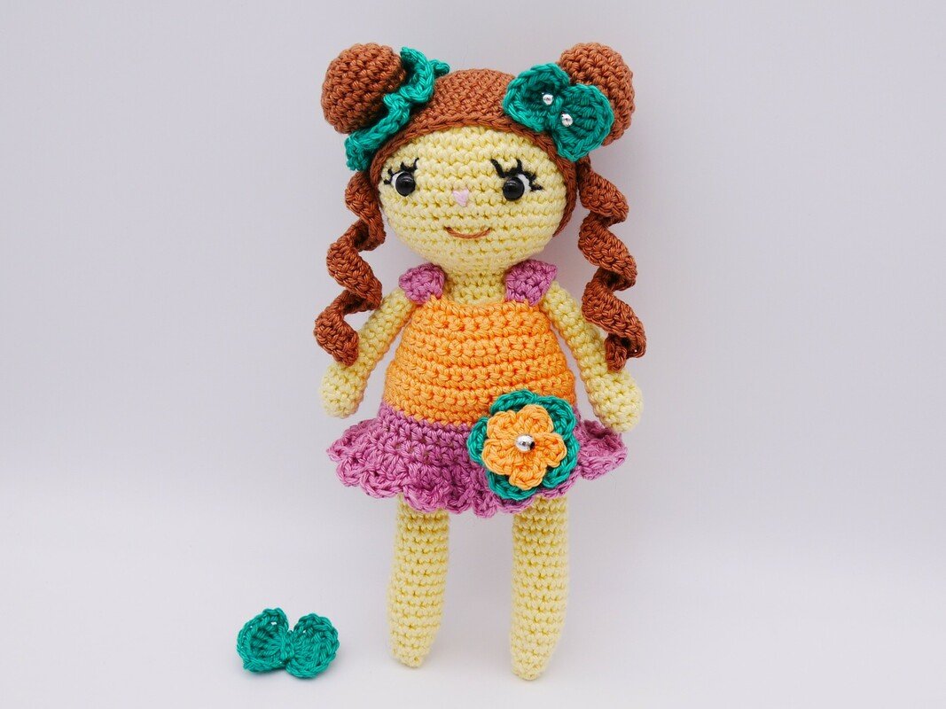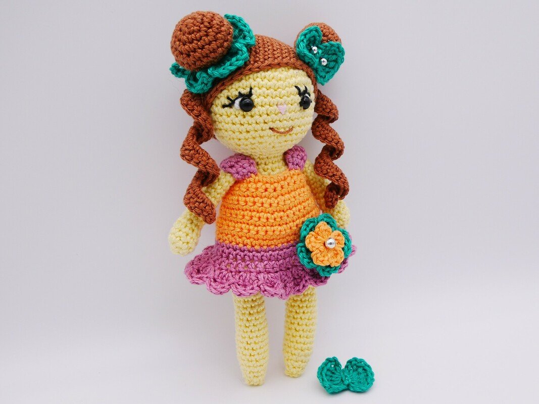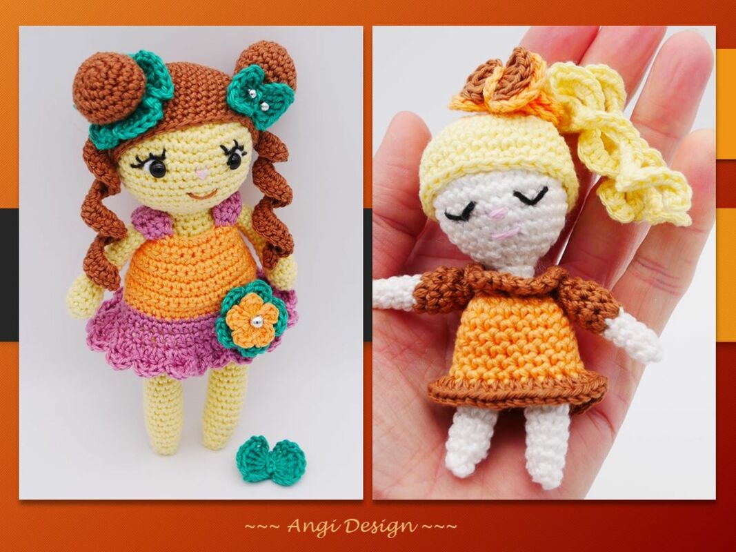 Du erhältst zwei ausführliche Häkelanleitungen im Sparpack für das süße Blumenmädchen und das Handpüppchen.
