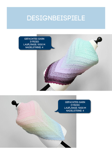 Die Größe deines Tuches ist abhängig von der Nadelstärke und der Lauflänge des Garns.