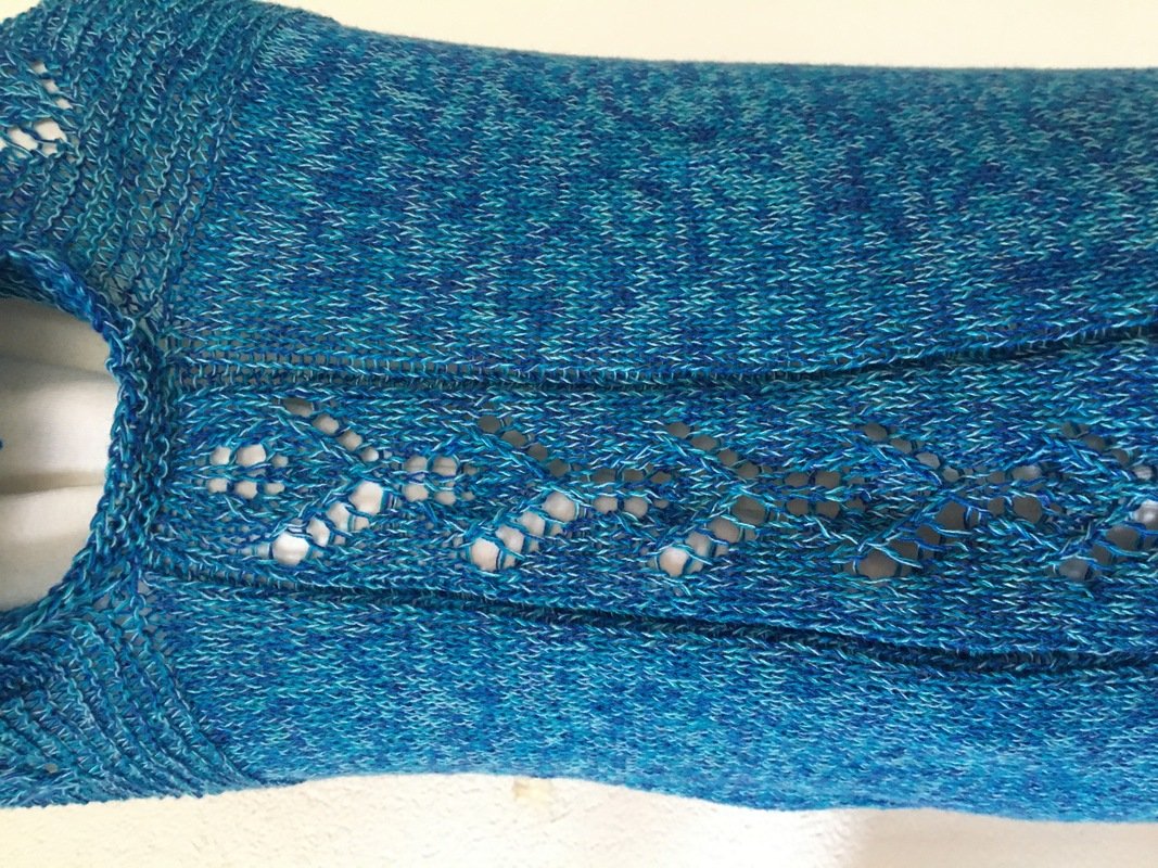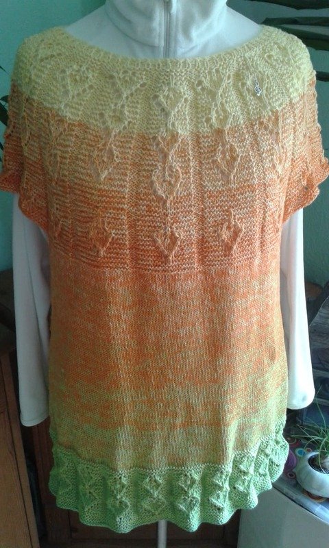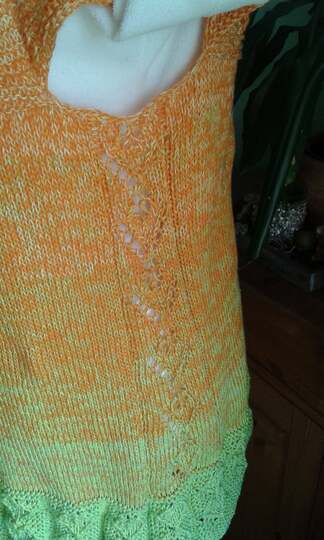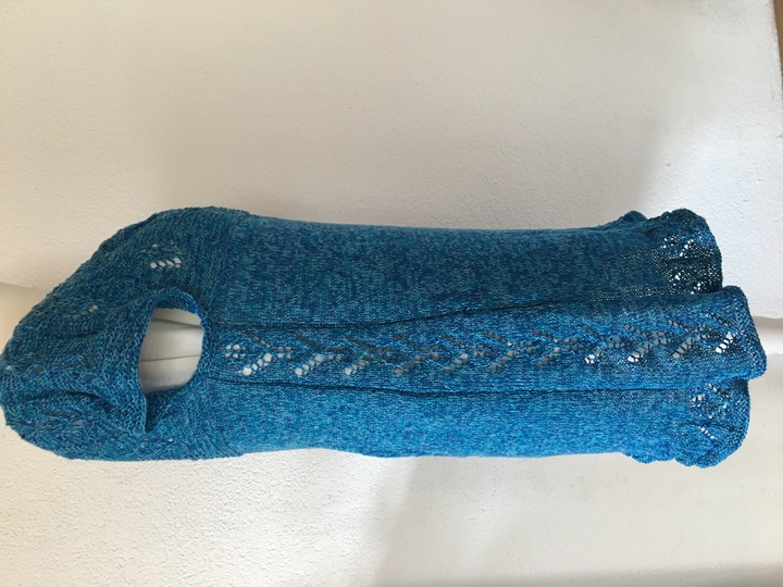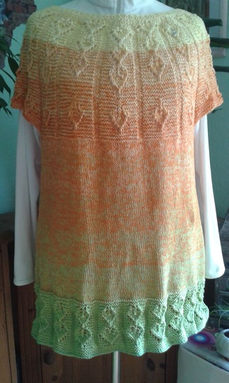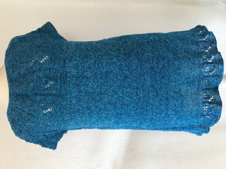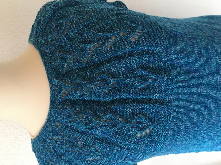 Das schöne an dieser Strickart ist, das es für alle Größen geeignet und auch erweiterbar ist. So ist aus meiner Idee nicht nur ein Shirt entstanden sondern auch ein schlichtes aber absolut ausgangsfähiges Sommerkleid!