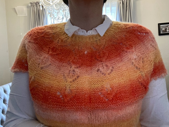 Der Pulli bzw. das Shirt wird in Runden von oben nach unten gestrickt. Die erforderlichen Zunahmen ergeben sich durch das Muster.