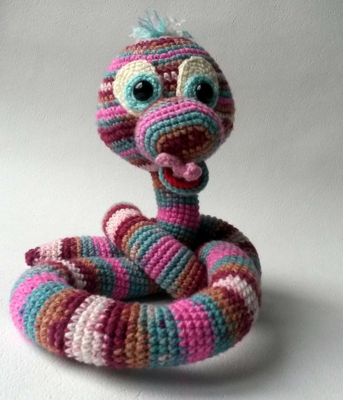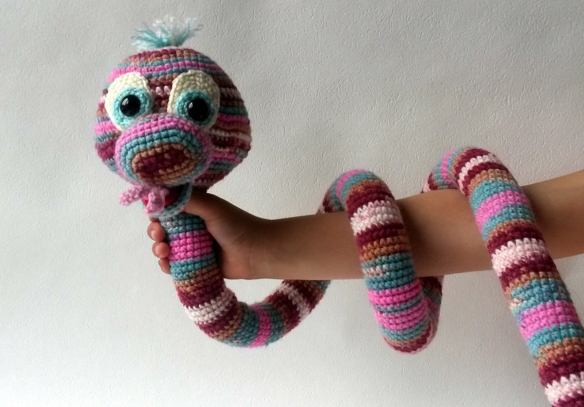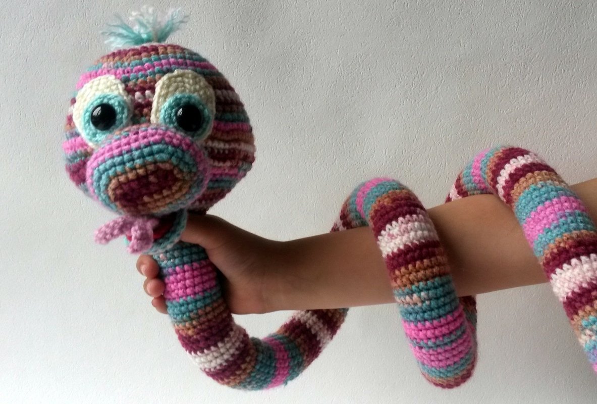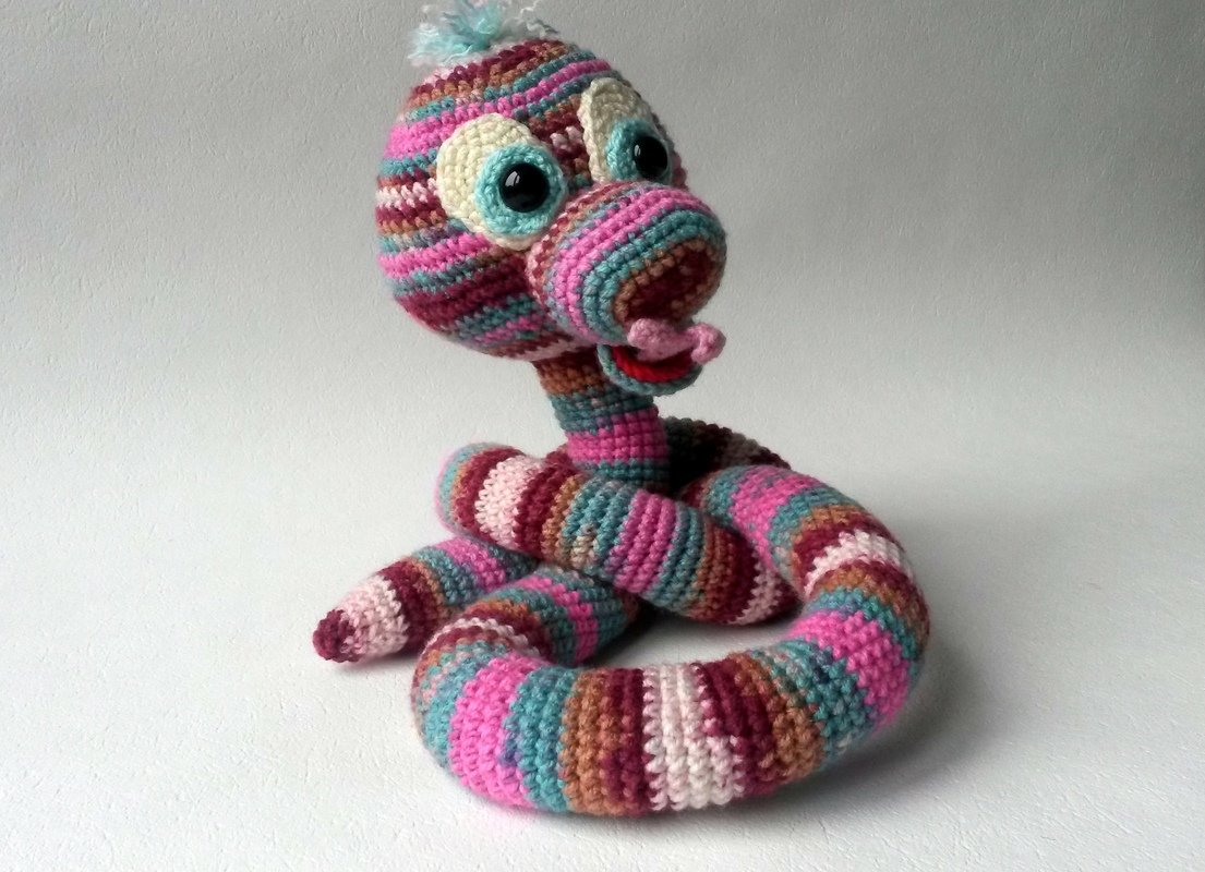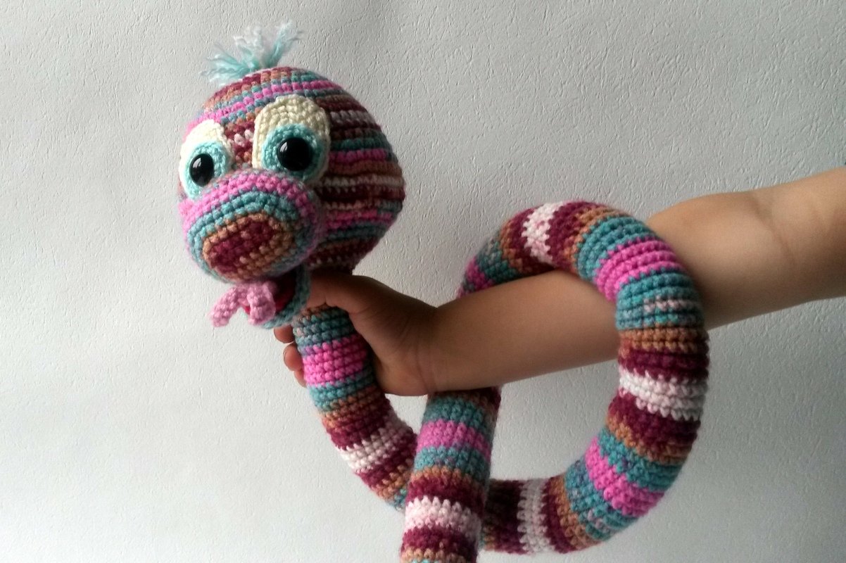 Für diese Häkelanleitung musst du nicht viel könne - feste Maschen und Luftmaschen sind alles, was du brauchst, um diese SChlange zu häkeln.