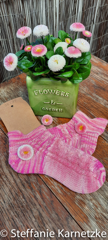 Die PDF Datei enthält die Anleitung für die oben beschriebenen Sneakersocken für die Größen 37/38, 39/40 und 41/42.