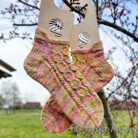 Du benötigst 4-fädiges Sockengarn mit einer Lauflänge von 400/420m pro 100g Deiner Wahl.