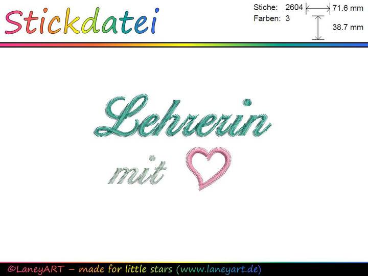 Das abgebildete Logo "LaneyART", die bunte Umrandung sowie Angaben zu Farbanzahl, Größe, etc. sind selbstverständlich kein Bestandteil der Stickdatei.