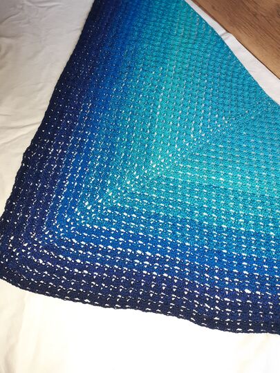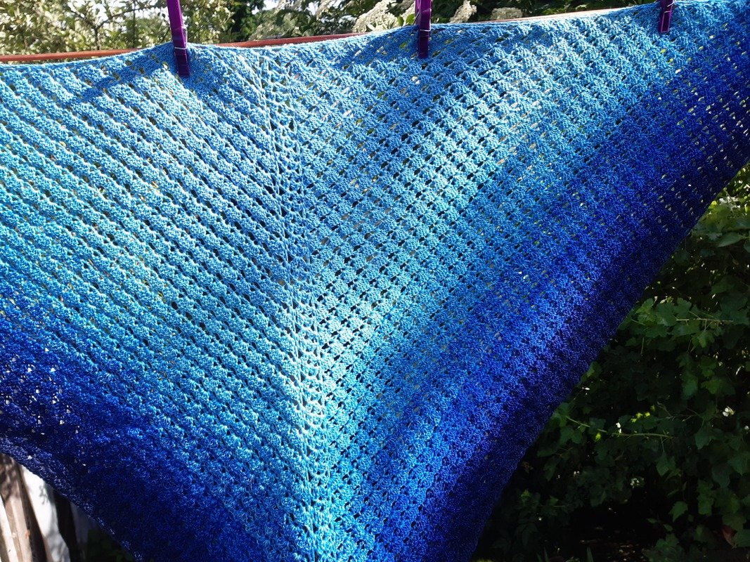 Das Tuch kann auch größer oder kleiner gehäkelt werden, das Muster kann jederzeit beendet werden, wenn das Tuch die gewünschte Größe erreicht hat oder es kann der Mustersatz so oft wiederholt werden, das es größer wird