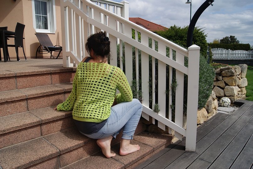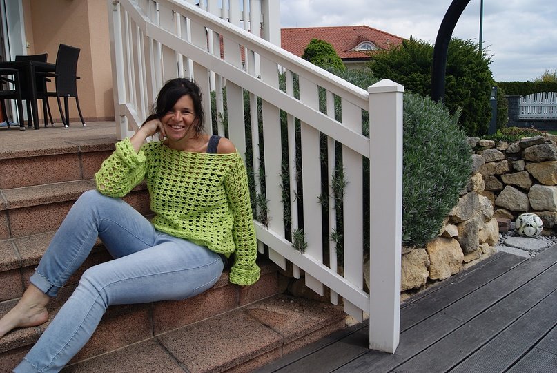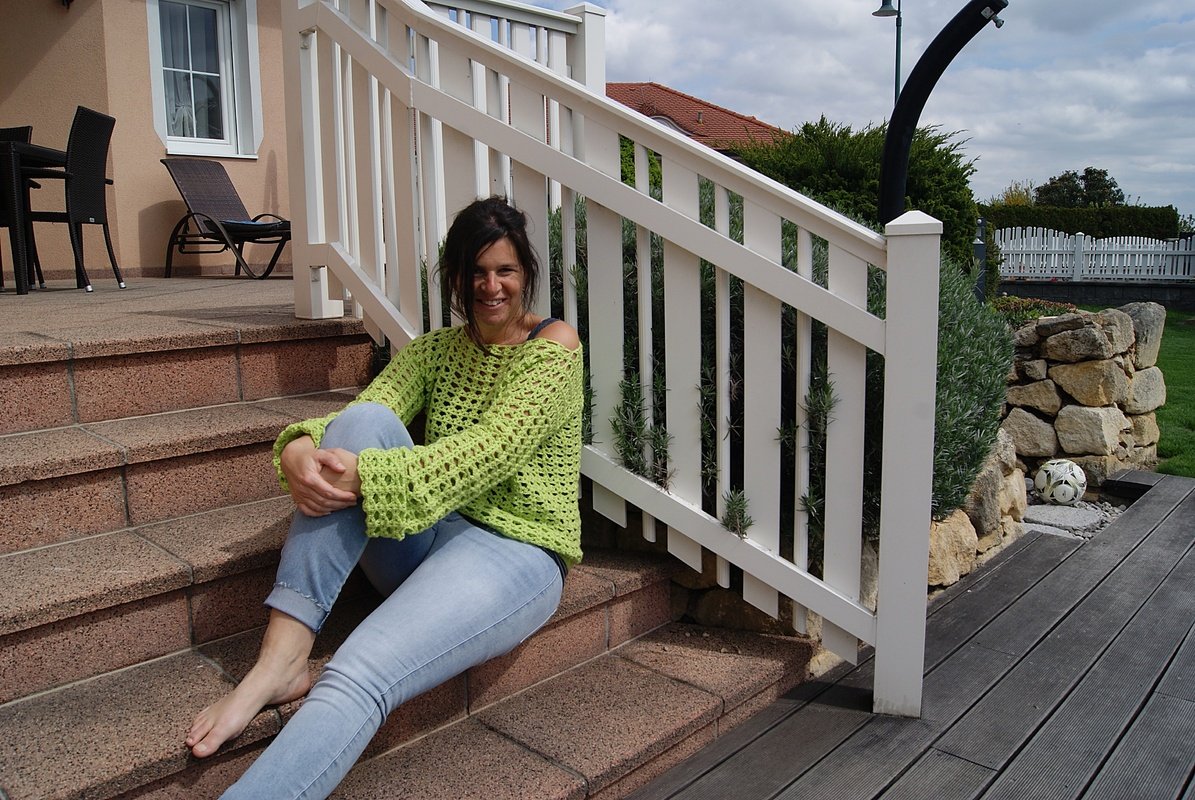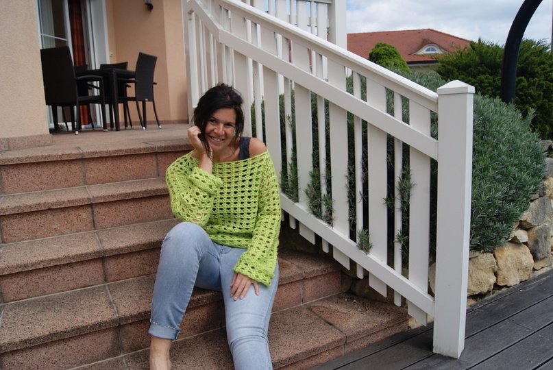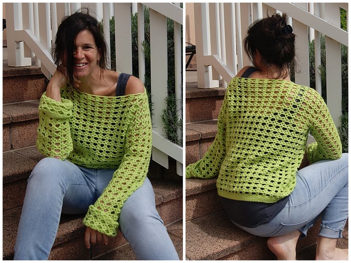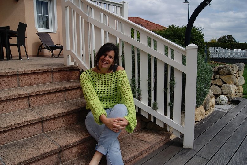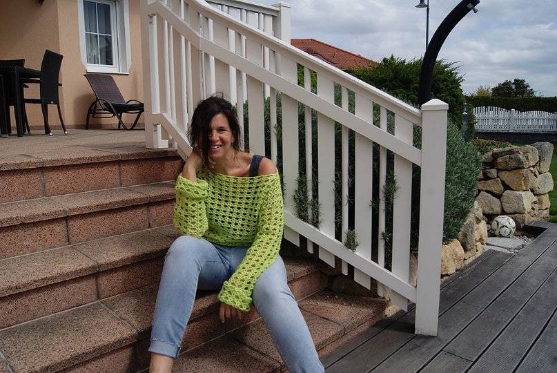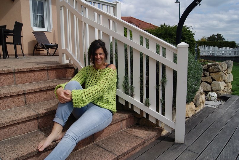 Die Anleitung ist einfach Schritt für Schritt mit Skizze, Maßen und Häkelschriften erklärt, die darunter auch genau Reihe für Reihe in Worten beschrieben ist. Der Pulli ist ganz leicht für alle Größen anzupassen.