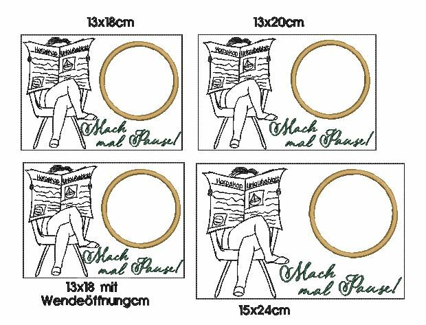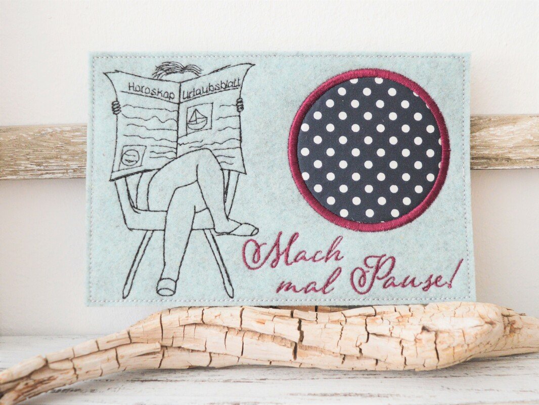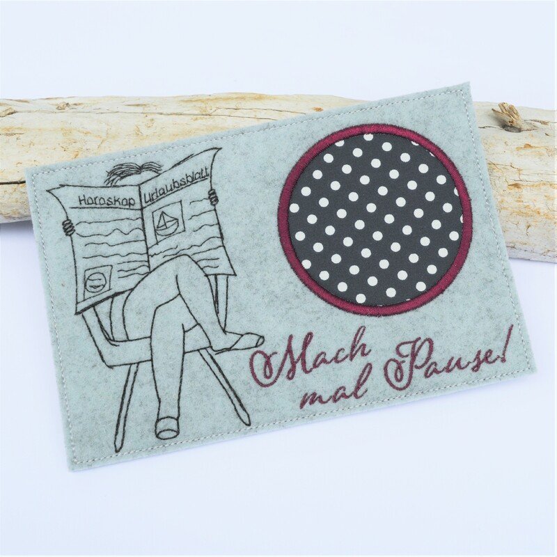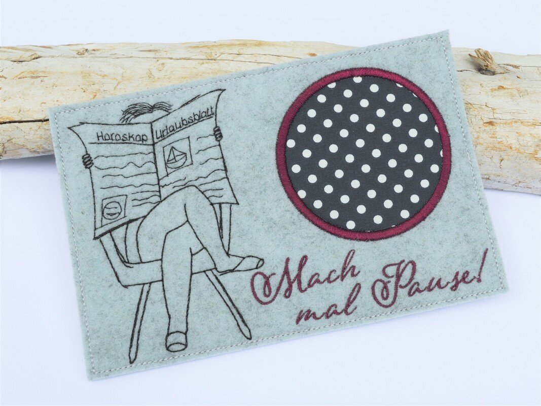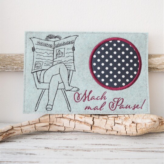 Stickdatei Pause "Mach mal Pause" Untersetzer,