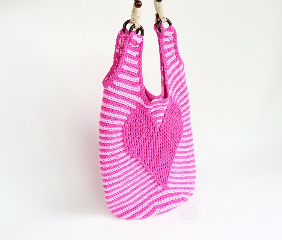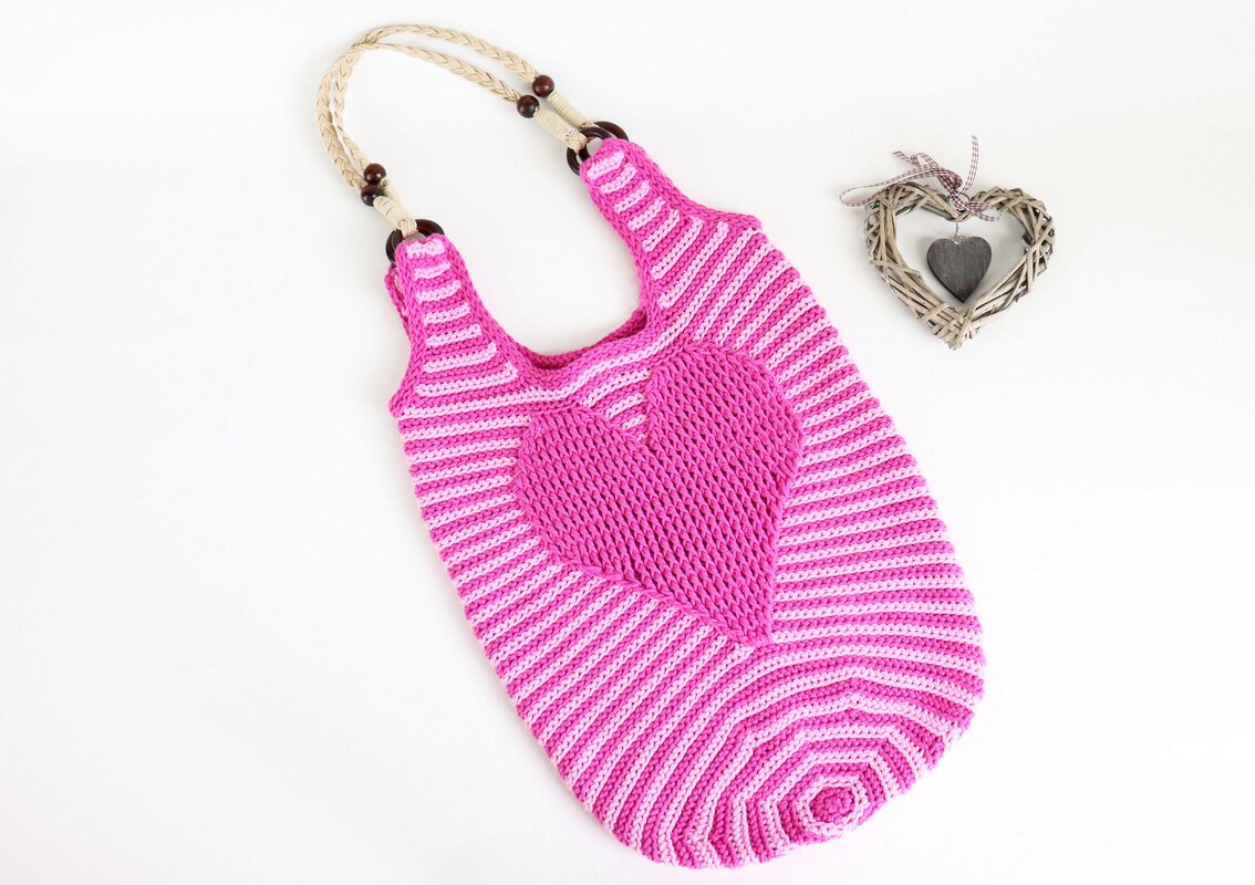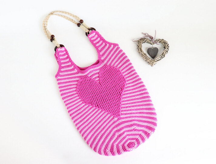 Yarn and Colors “Epic” 100 % Baumwolle, Lauflänge: ca. 75 m / 50 g, Farbnr. 049 (Fuchsia) 200 gr. und Farbnr. 037 (Cotton Candy) 200 gr., Alternative: Lana Grossa COTTON MIX 80 (McWool), 50 % Baumwolle, 50 % Acryl, Lauflänge: ca. 80 m / 50 g, Häkelnadel Nr. 5, Nr. 5,5 und Nr. 6. Evtl. fertige Henkel mit Ringen, Magnetverschluss, Dekoband (ca. 15 mm breit), Klebeband (Saumband) ca 15 mm breit