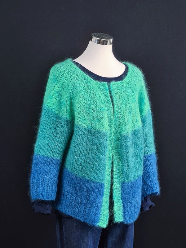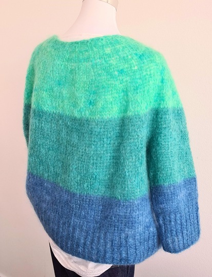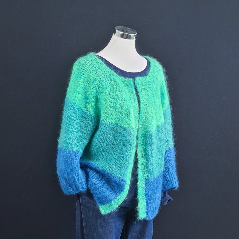 Der Cardigan hat eine Rundpasse und wird in einem Stück gestrickt. Die Ärmel haben eine 3/4 Länge. Er eignet sich auch super, wenn Du noch nicht so viel Erfahrung hast, da er glatt rechts in einem Stück gestrickt wird.