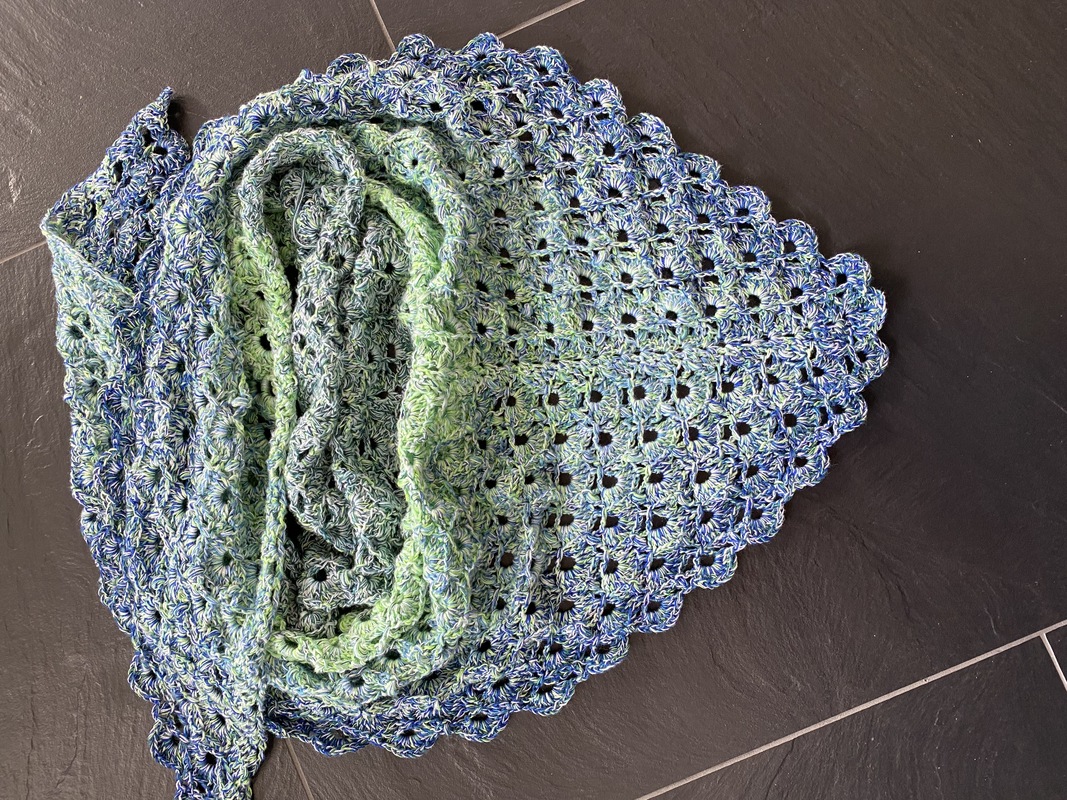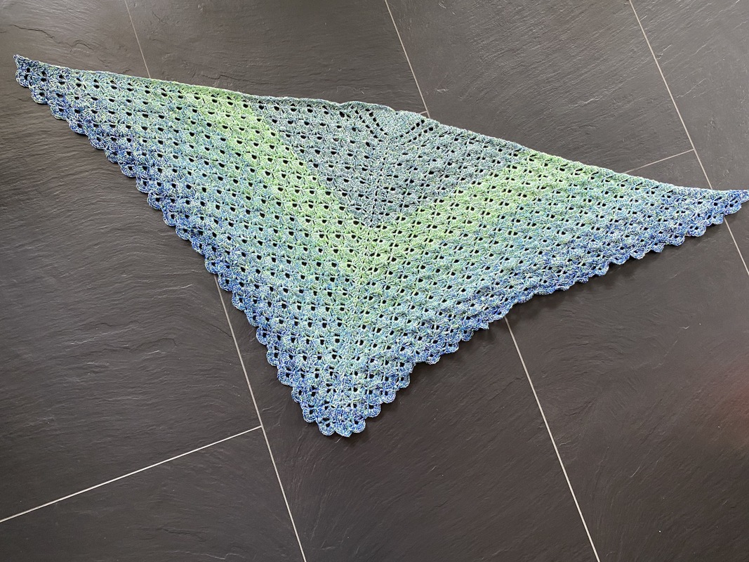 Bei „Tilarah“ handelt es sich um ein Dreieckstuch, welches klassisch von der Mitte aus gehäkelt wird.