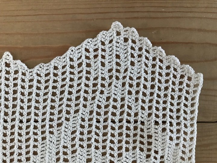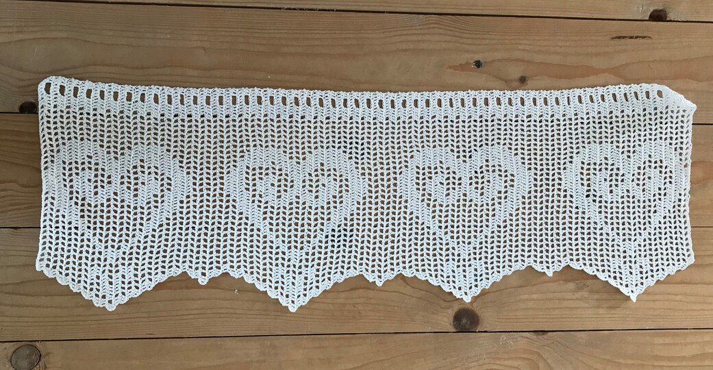 Die Anleitung ist einfach erklärt. Die Gardine besteht aus Luftmaschen und Stäbchen.