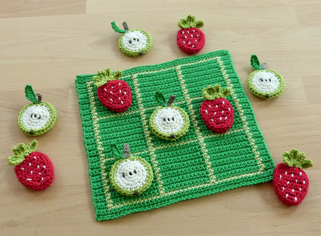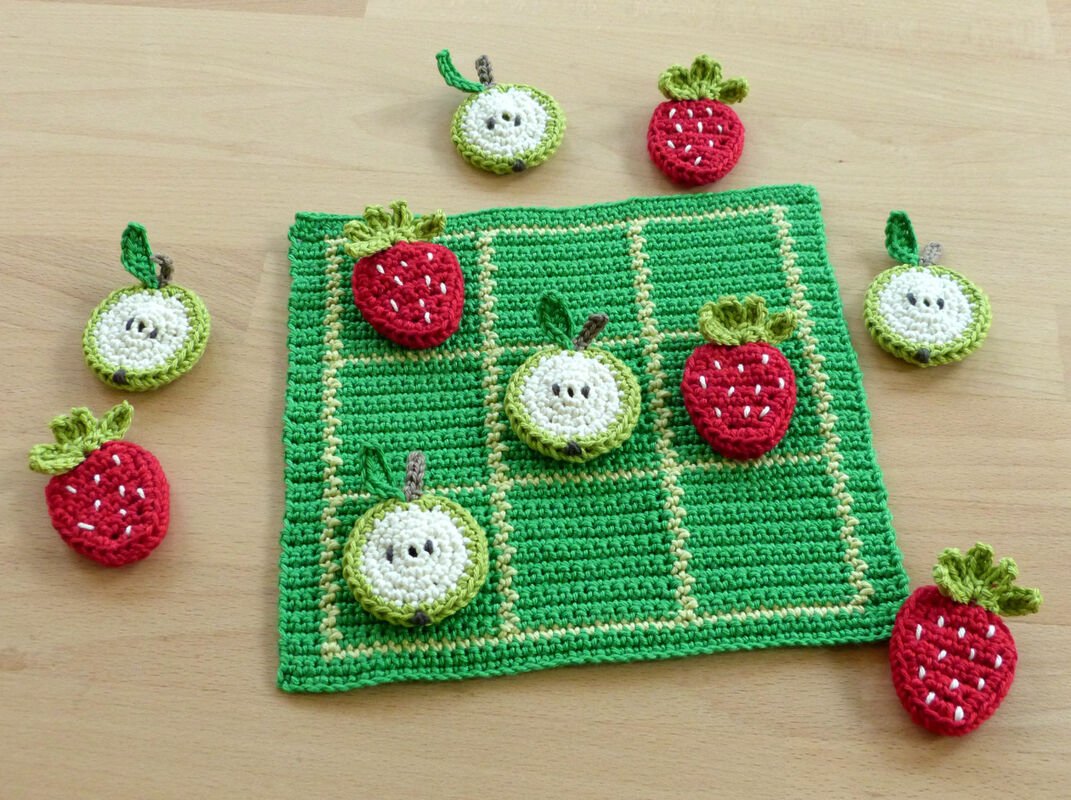 Tic Tac Toe oder "3 gewinnt": Ein Klassiker unter den Brettspielen mit einfachen Regeln und trotzdem immer wieder spannend! Hier spielen süße Erdbeeren und saftige Äpfelchen zusammen im Garten auf dem grünen Rasen.