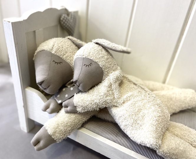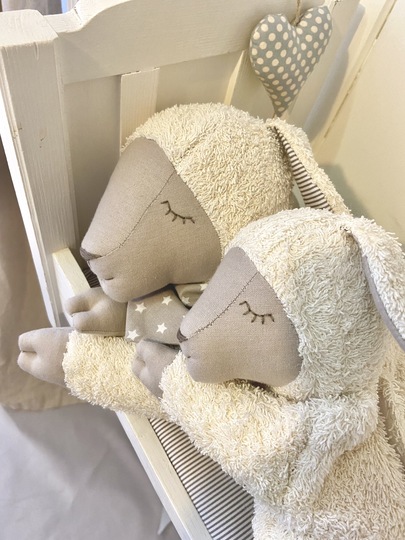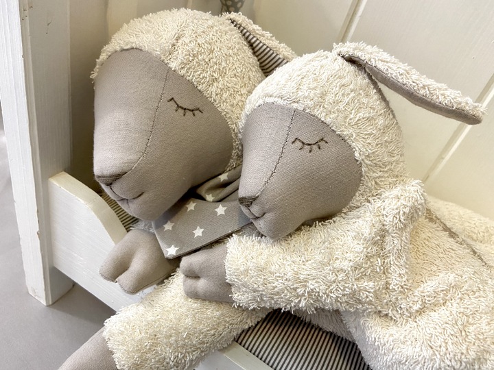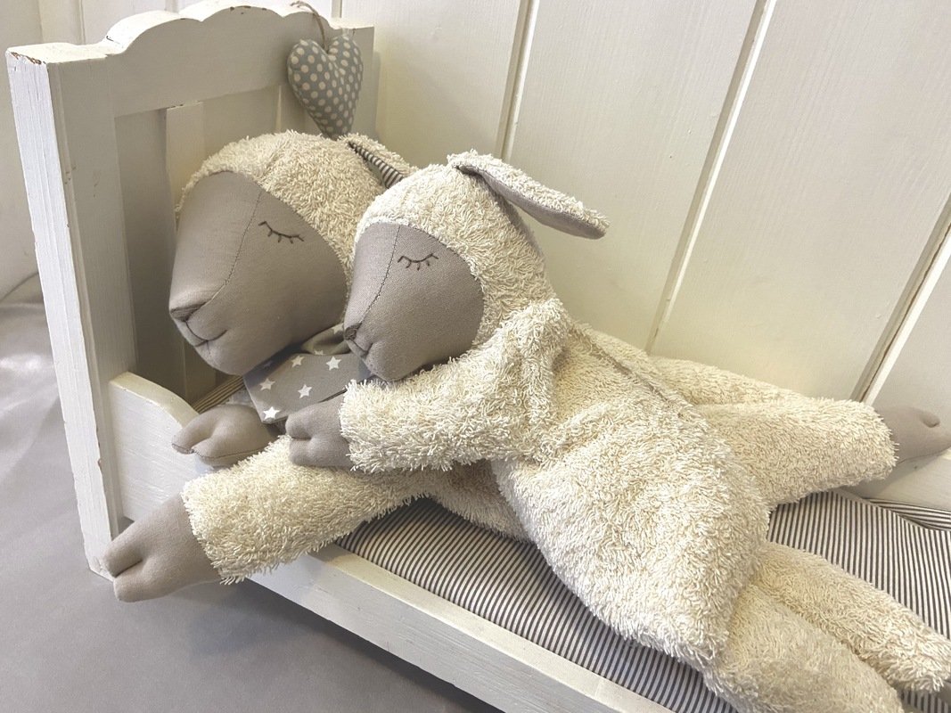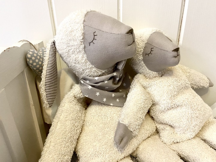 Anleitung und Schnittmuster für ein niedliches Schäfchenpaar, das sowohl als Kuscheltier als auch als Wärmekissen verwendet werden kann. Eine schöne Geschenkidee zum Geburtstag oder auch zu einer Taufe.