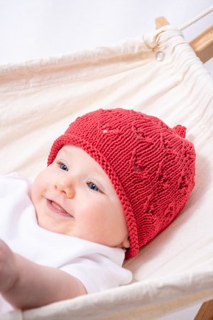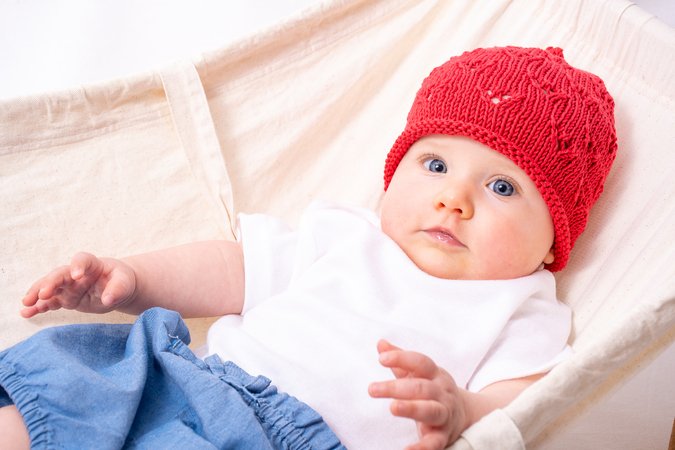 Strickanleitung für eine zauberhafte Babymütze Tessa in 3 Größen von 3-18 Monate.