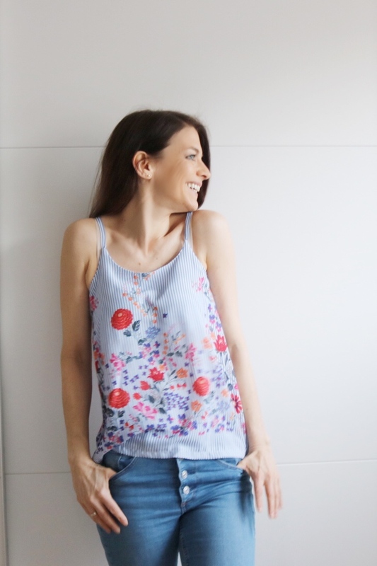 Materialien: leichte Stoffe wie Chiffon, Voile, Batist, Viskose, Crêpe + ein 1 cm breites, 42 cm langes (Spitzen-)Gummi für 2 Träger