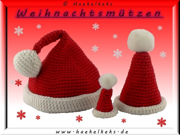 Wir bieten hier die passende, leicht verständliche und bebilderte Häkelanleitung zu den Weihnachtsmützen in 3 verschiedenen Größen kostenlos an.