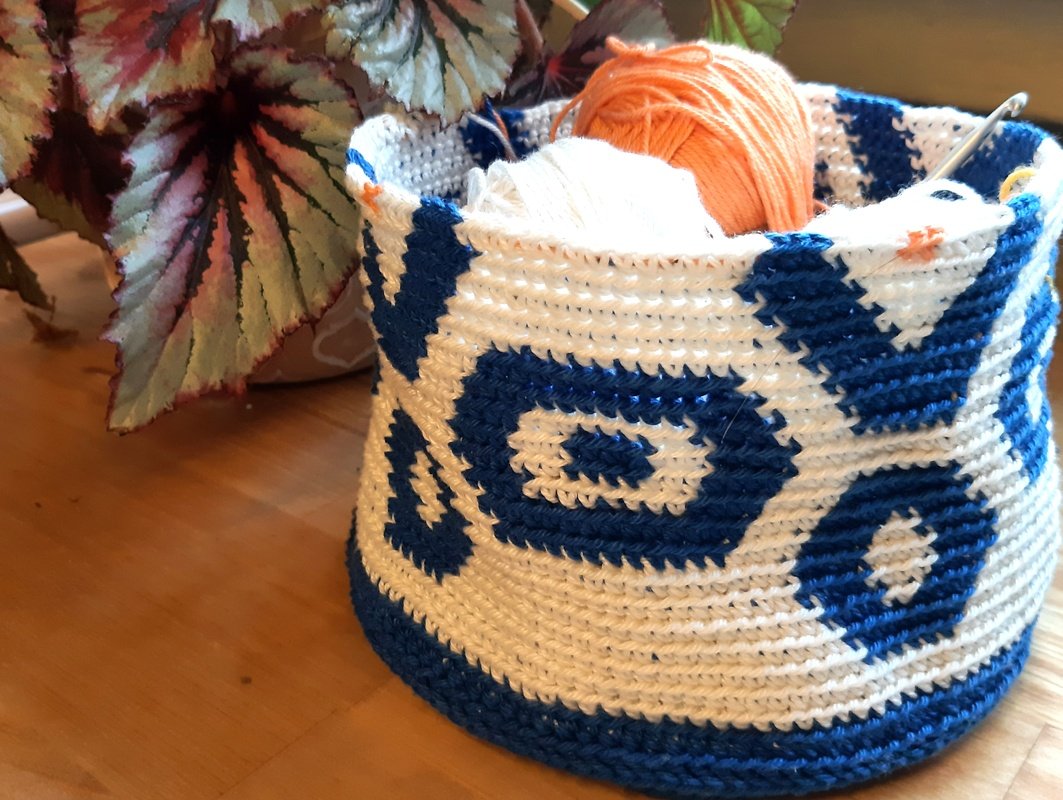 Tasche "Andalusien"- Zunächst etwas wissenswertes über die Technik: Wir häkeln die Tasche oder den Korb in der Faire Isle Technik, d.h. wir häkeln mit zwei oder mehr Farben gleichzeitig. So entstehen unterschiedliche Farbmuster. Es wird nach einer Mustervorlage (am PC erstellt) gearbeitet. Oft taucht diese Technik auch unter Tapestry auf. Tapestry ist weben. Es gibt diese Taschen auch gewebt. Meist werden sie in südamerikanischen Ländern hergestellt. Wir wollen die Tasche aber häkeln.